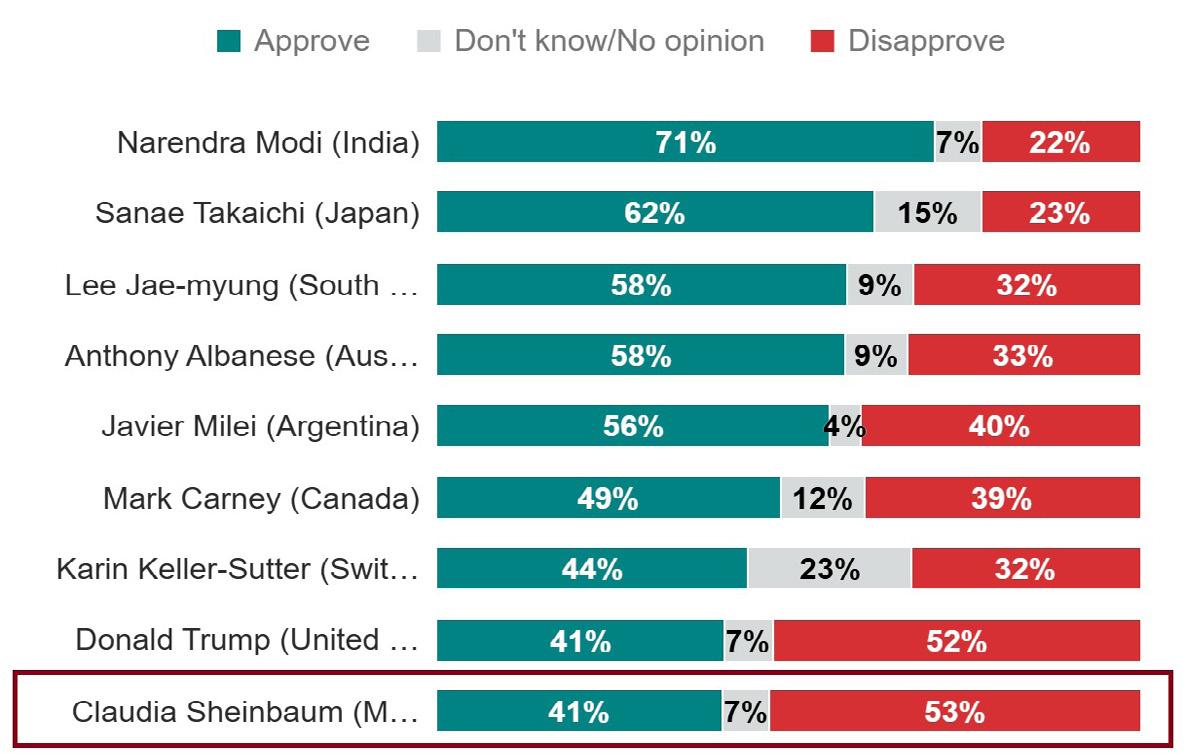 Gráfica de aprobación de Sheinbaum a nivel mundial.