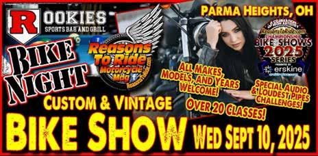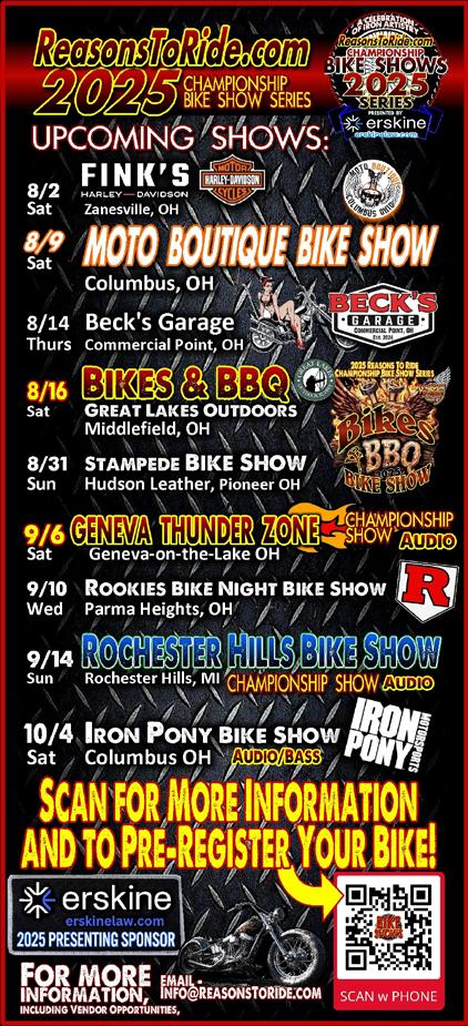 Reasons To Ride Bike Show as part of Labor Day Weekend, Motorcycle Stampede Rally! This is a great regional event, drawing riders from Michigan, Indiana, and throughout Ohio.