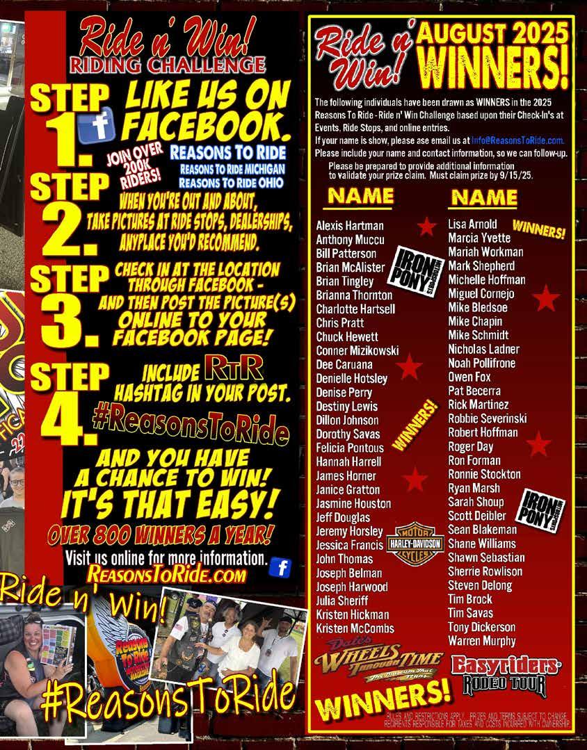 Register in advance at ReasonsToRideOhio.com to reserve your space and get a FREE T-Shirt! Follow the event on Facebook, for more information and updates!