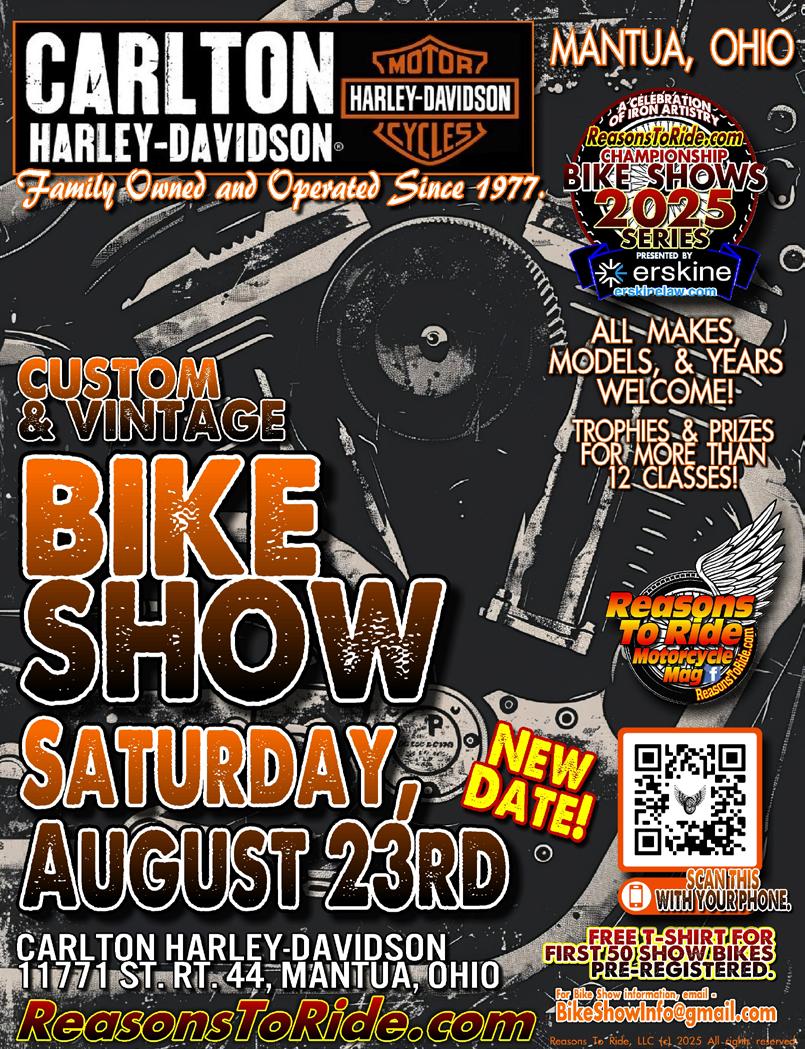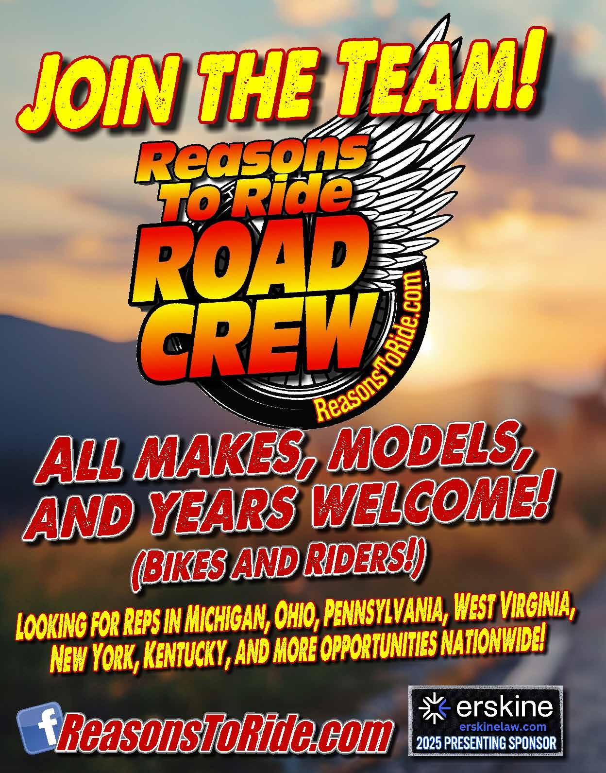 To help get the channel going, we would like to invite everyone to stop by and consider hitting the “subscribe” button. If you find something you like and appreciate what we’re building, you might consider subscribing and possibly sharing to your page. If you do – and include the #ReasonsToRide tag on your post, you will have the chance to win prizes as part of our Ride n Win Challenge.. possibly even that ’49 Harley or $500 GC! We will be awarding at least 20 prizes a month based upon the YouTube subscriptions! Visit and subscribe at www.youtube.com/@ReasonsToRide