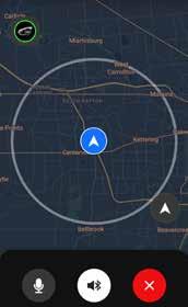 When you press the red Wave button on the Home screen or double tap the mesh button, the Wave intercom screen appears, showing your location centered on the map. The circle represents the Wave Zone, which has a radius of 5 miles (8 km). #7 The app initiates intercom connection for all Users within the Wave Zone. This means that users must be within this circle together to start an intercom conversation.