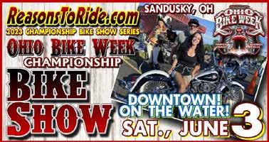 Reasons To Ride is pleased to announce that we will once again be hosting the OFFICIAL OHIO BIKE WEEK BIKE SHOW in downtown Sandusky on Saturday, June 3rd – right on the WATER! This will be an informal, Ride-In, Bike Show following the RTR Championship Bike Show Series Rules and Procedures.