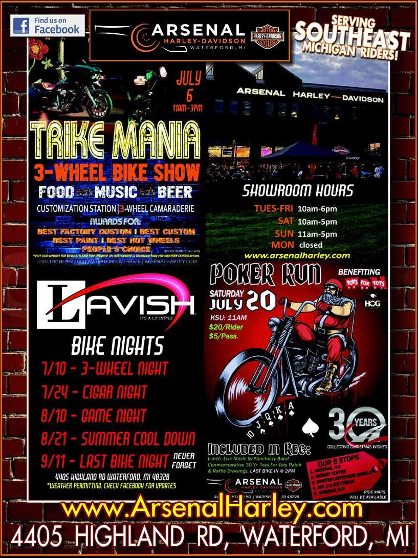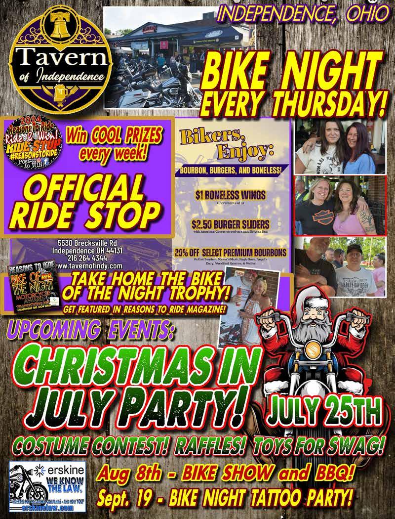 At some locations, such as Arsenal Harley-Davidson, Tavern of Independence, Artesian Wells, Fink’s, and Zeppe’s – we will be regularly presenting a BIKE OF THE NIGHT Trophy as part of their Bike Nights! Follow them or us on Facebook for more details!