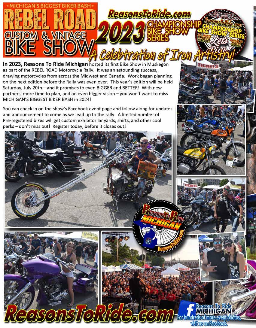 REBEL ROADS - Michigan’s premier motorcycle rally returns to the streets of Muskegon, Michigan July 17-21, 2024 – and RtR will be there!