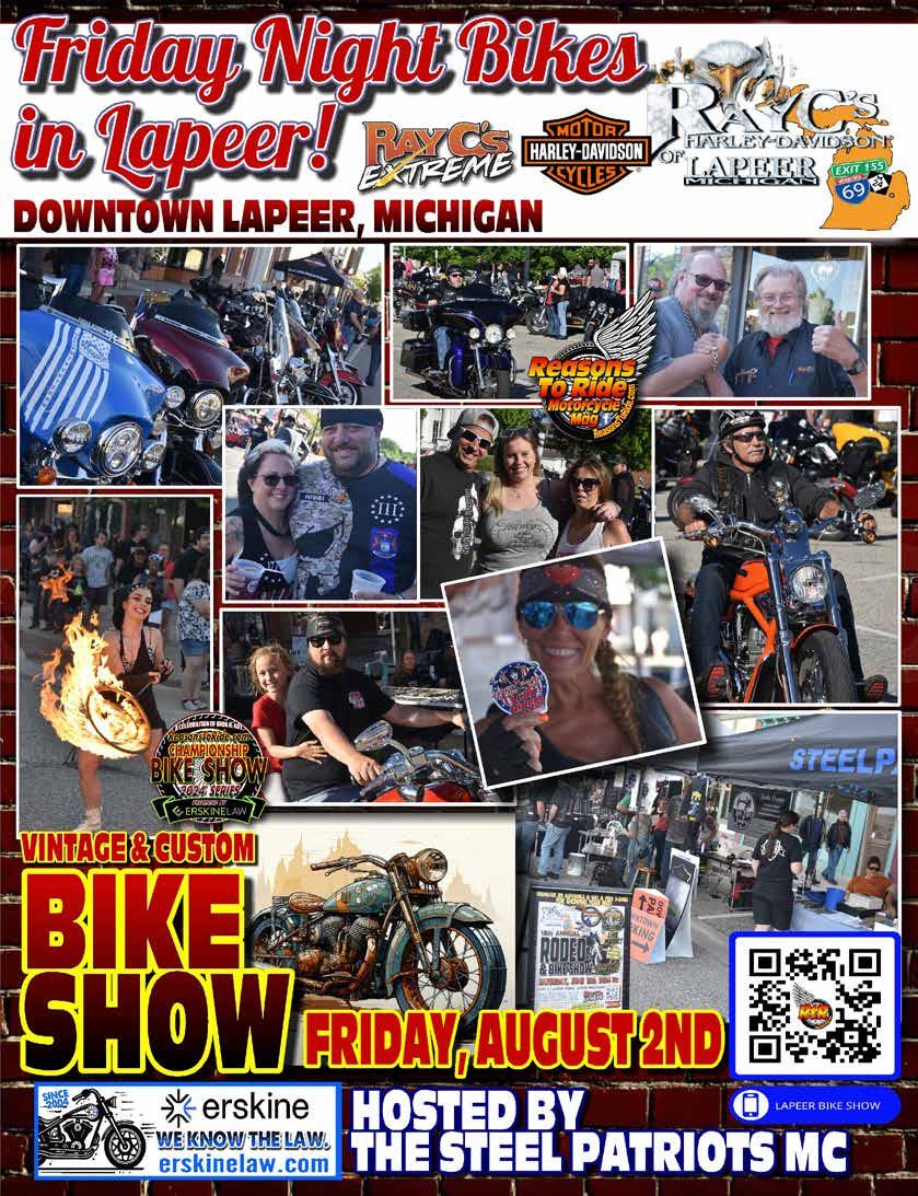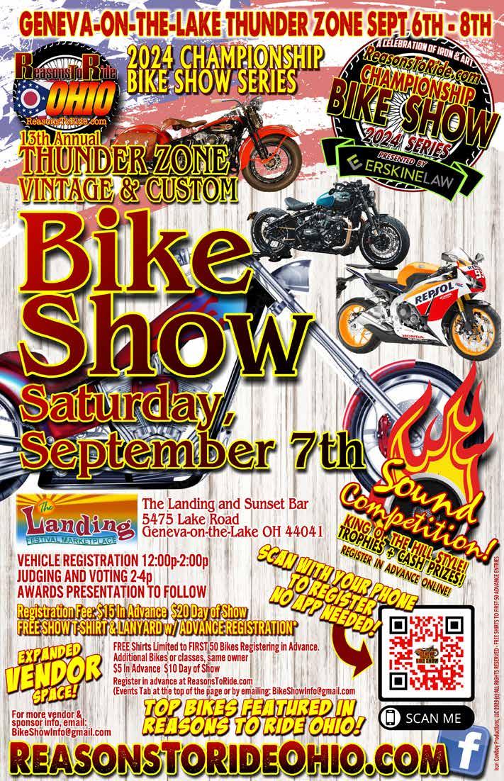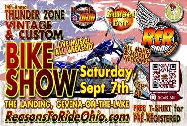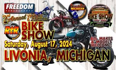 Register ONLINE at ReasonToRide.com for these Bike SHOWS and more! For more information, email us at BikeShowInfo@gmail.com and follow us online at www.Facebook.com/ReasonsToRide www.Facebook.com/RTRMichigan, or www.Facebook.com/RTROhio