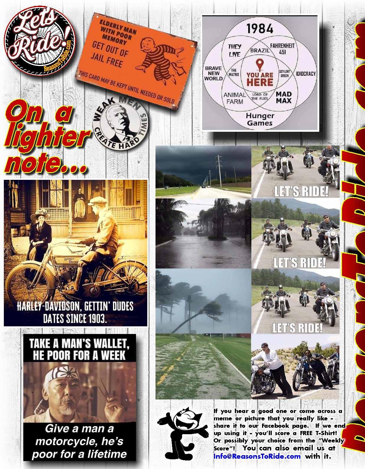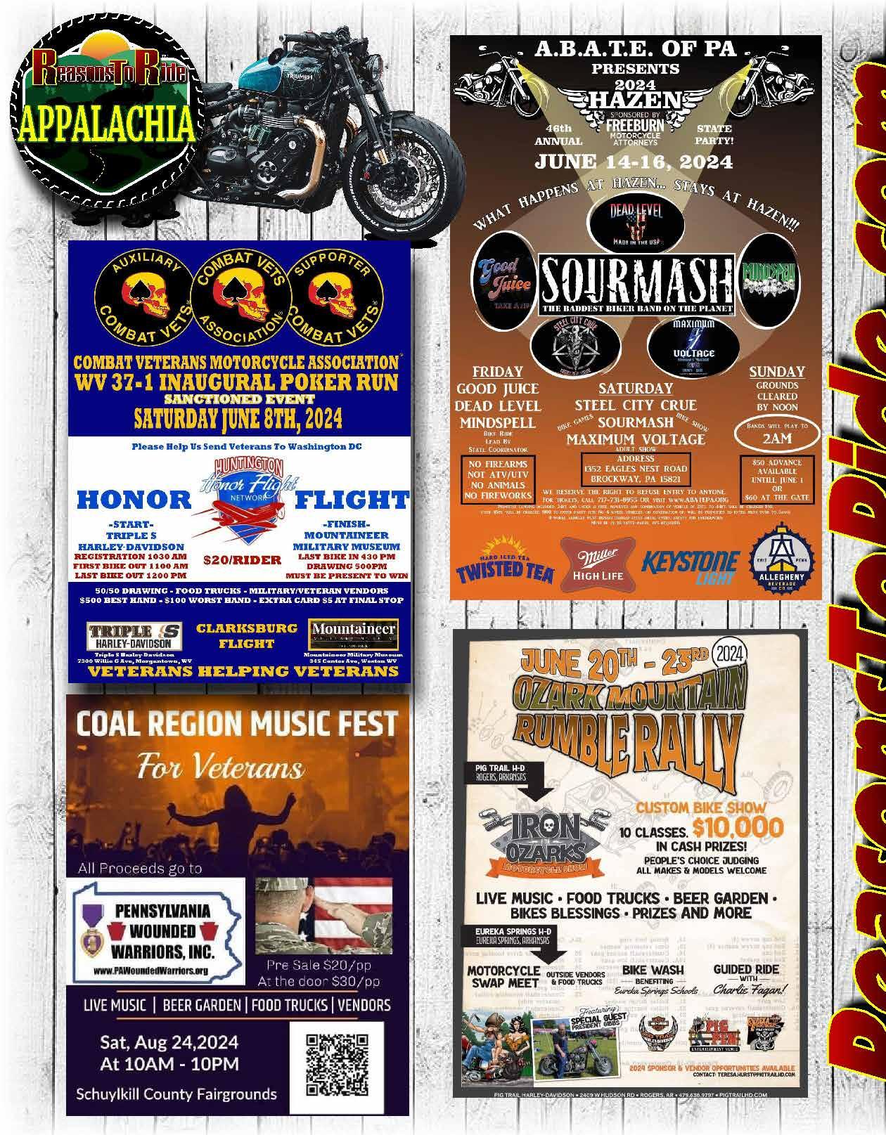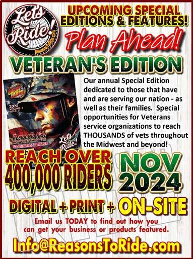 *Tentative dates. Date and details to be finalized and will be announced in future editions of RTR, on our Facebook pages, or at ReasonsToRide.com