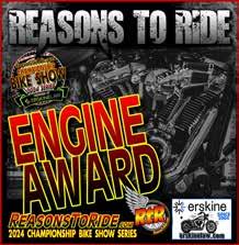The ENGINE AWARDS are presented based upon appearance and design of the motorcycle engine. They are NOT driven by performance / highest horsepower. In many cases we are seeing more and more show bikes with engines that are truly works of art. These awards give us an opportunity to recognize those that go above and beyond in terms of their bike’s powerplant.