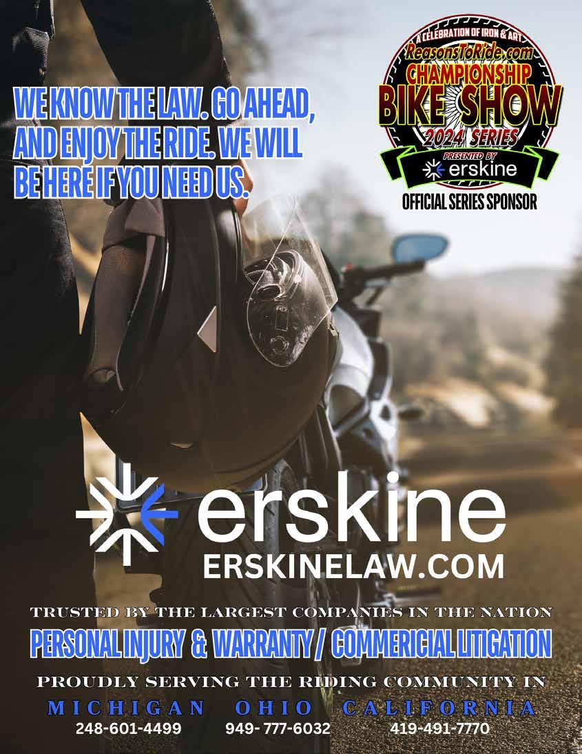 As always, the RtR crew will be out and about hitting various Bike Nights, Rides, and other events throughout the upcoming riding season. At select events, our team and our partners will be recognizing one or two bikes as “BIKE OF THE NIGHT” as part of the 2024 Championship Bike Show Series –presented by Erskine Law.