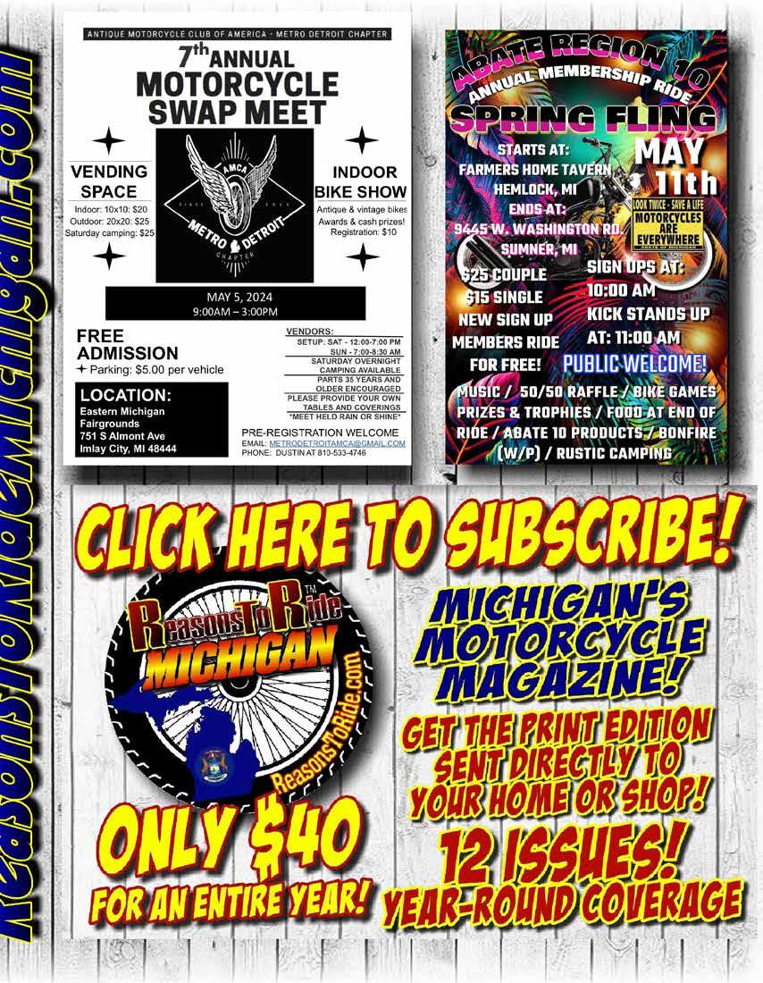 For the 18th Edition of Ray C’s RODEO DAY, Reasons To Ride will be returning to Lapeer with the CHAMPIONSHIP BIKE SHOW SERIES with a fun show that’s great for the entire family. Presented by Erskine Law, we will be showcasing the best bikes in the region including extra RACING and OFF-ROAD CLASSES! We will also have the DYNO’s running ALL DAY in order to recognize and the MOST HORSEPOWER! Special SHOW SHIRTS for pre-registered exhibitors!