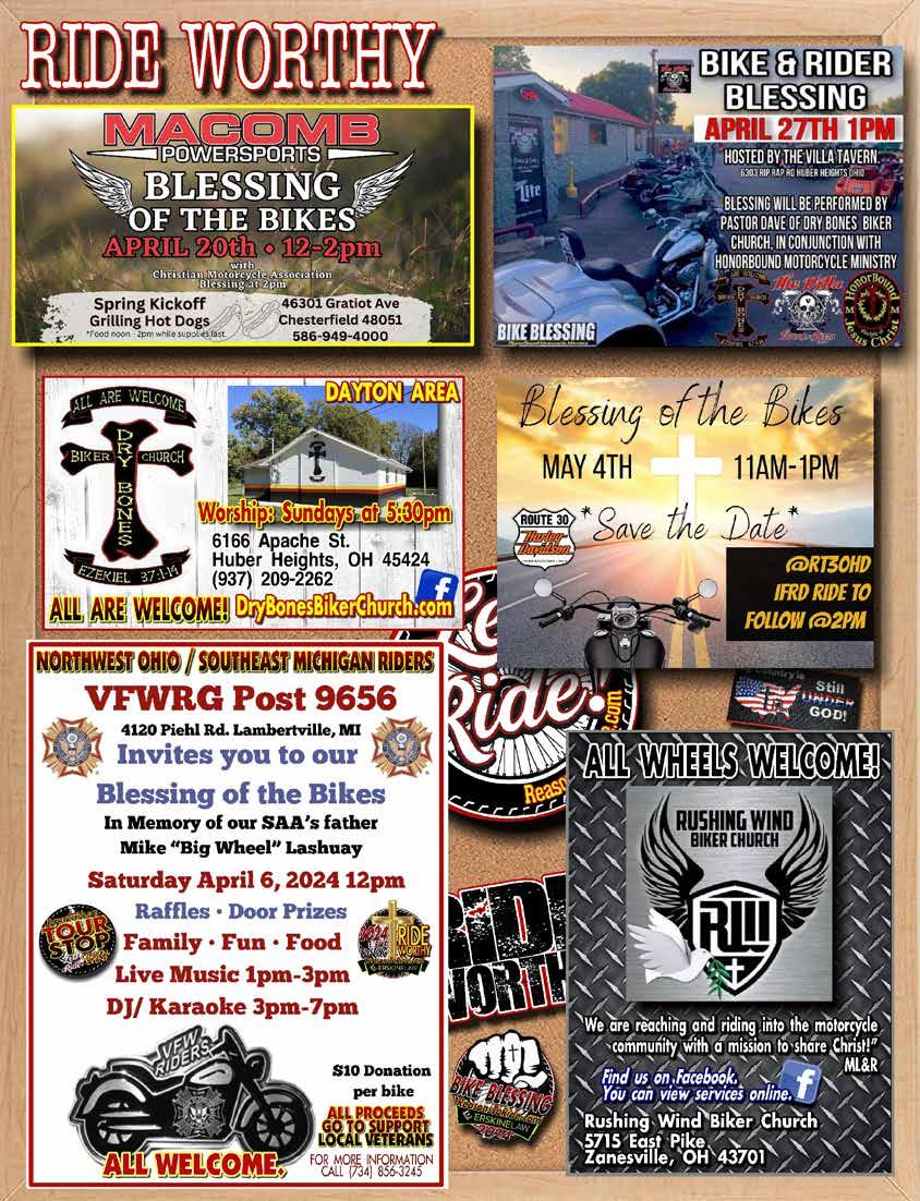 If you have a message that you’d like to share with riders across Ohio and the Midwest, let us know. Reasons To Ride welcomes the opportunity to work with established motorcycle ministries. Feel free to share upcoming events with us as well, by emailing information to Events@ReasonsToRide.com