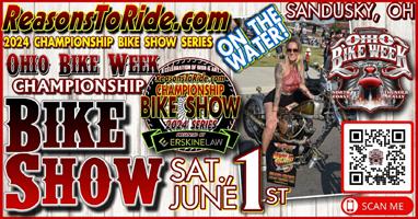 Reasons To Ride is pleased to announce that we will once again be hosting the OFFICIAL OHIO BIKE WEEK BIKE SHOW in downtown Sandusky on Saturday, June 1st – right on the WATER! This will be an informal, Ride-In, Bike Show following the RTR Championship Bike Show Series Rules and Procedures.