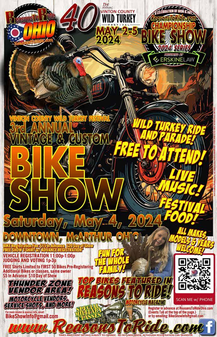 So go ahead and mark it on the calendar – OHIO BIKE WEEK, May 24 – June 1st, 2024. And the OHIO BIKE WEEK BIKE SHOW – June 1st! If you’re going to show your bike – make sure you register in advance. We have SPECIAL EDITION SHOW SHIRTS – for FREE, for the first 50 bikes to register in advance!