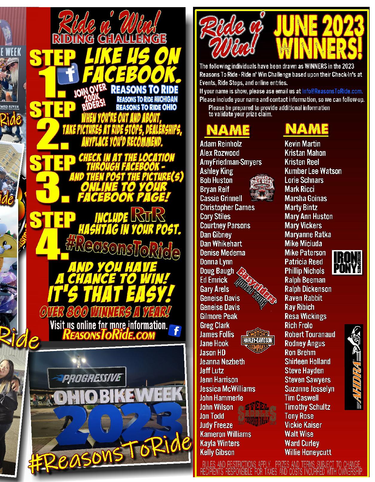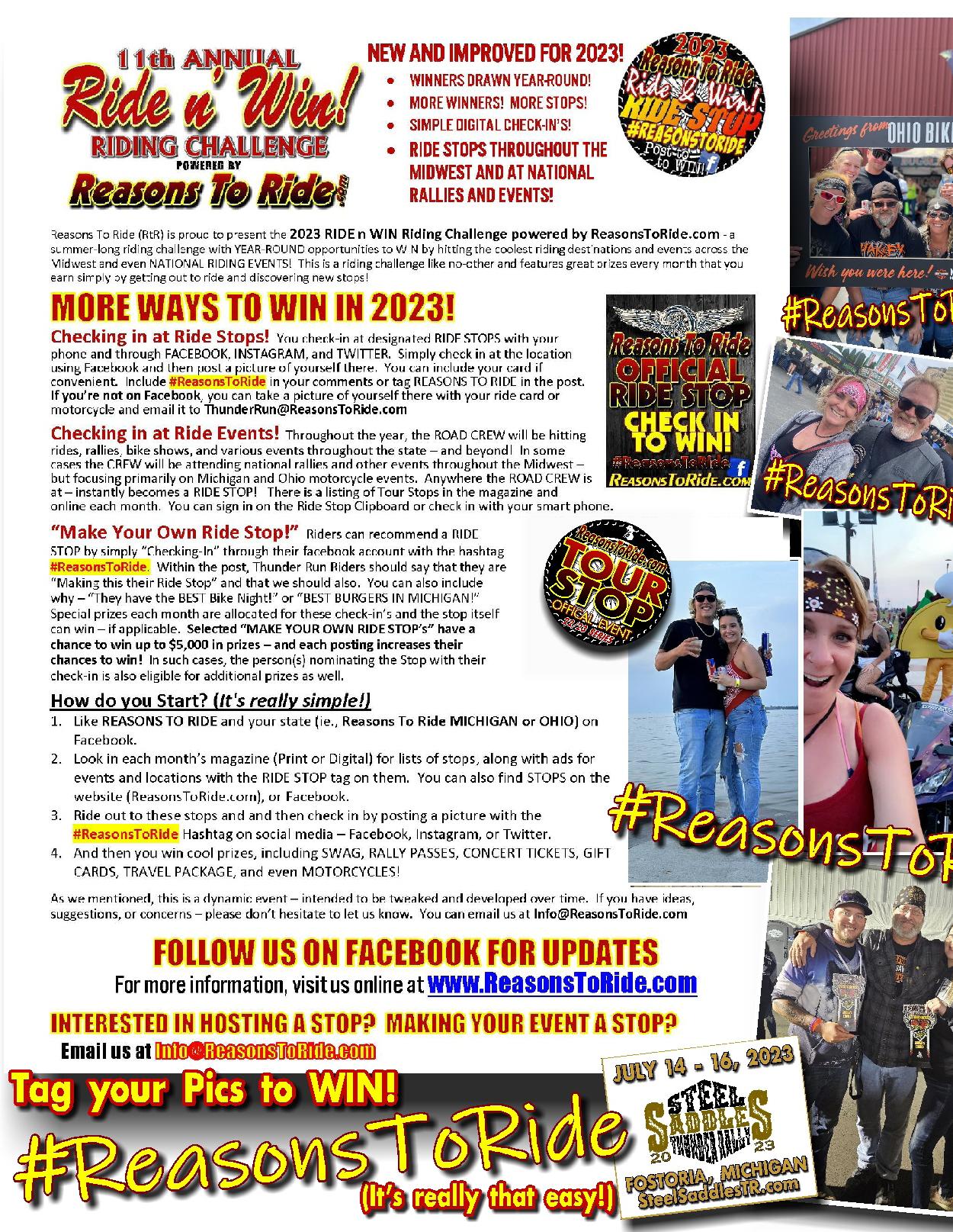 For information on how you can become a 2023 Ride n’ Win Ride Stop – email us at Info@ReasonsToRide.com