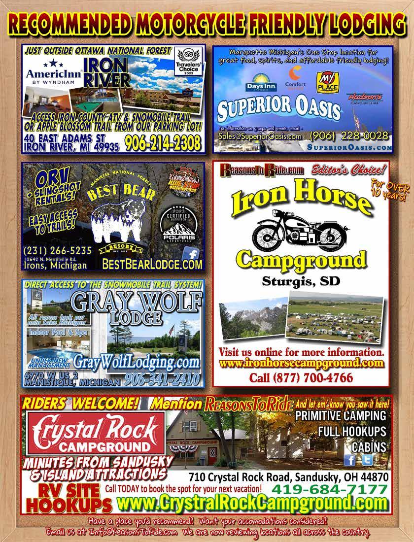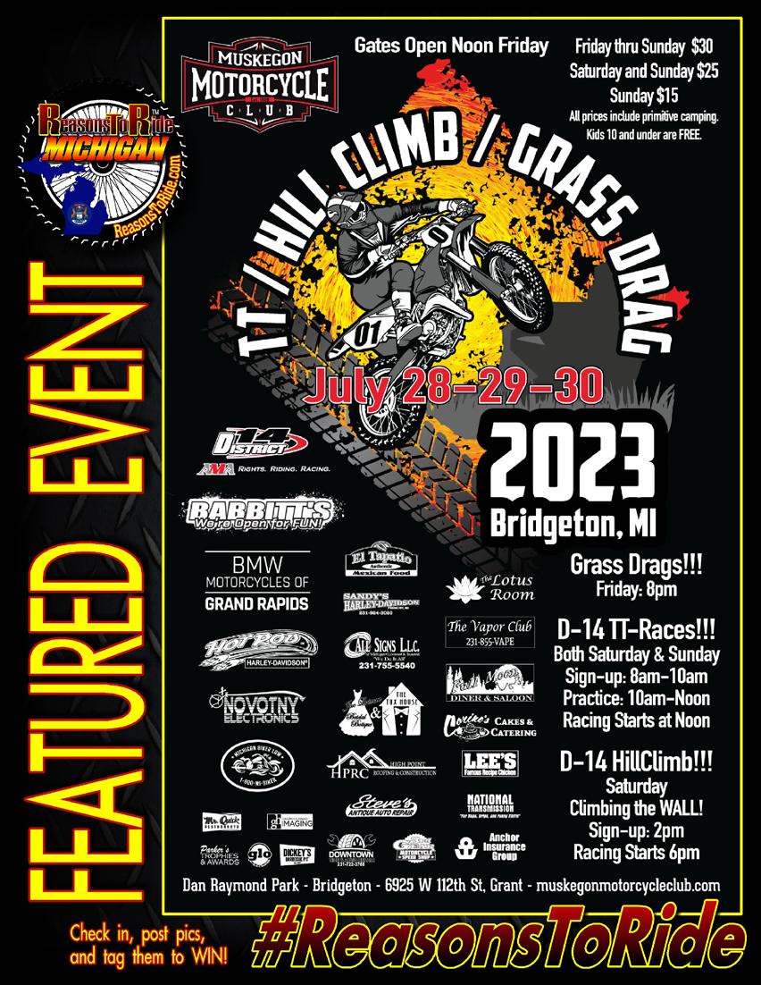 On the Cover: Michigan’s Biggest Biker Bash - REBEL ROAD - returns to Muskgon, Michigan overlooking Lake Michigan. This great rally supports local efforts to combat child abuse and features a Reasons To Ride Bike Show on Satudary, July 22nd. For more information, visit RebelRoad.org