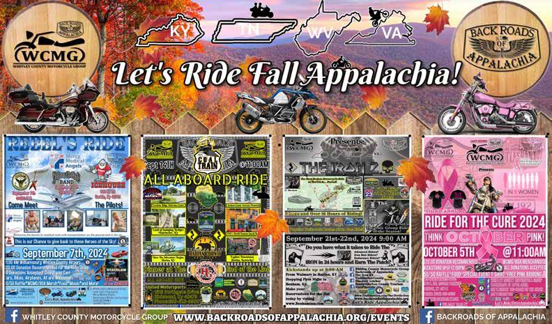Any of these locations will blow your mind now and moving into September and the ride to get there is even better! For you 2-ups and Scenery Aficionados who would rather be guided on your journey you're in luck! Each Fall we lay out our ultimate list of rides and events in September and October and ride right up until the leaves have peaked! Even our last ride and event of the season in October is a “Fall Leaves” in KY and TN which covers 2 states! From “The IRON 2.0” Event to our annual “Mountain Mainstreet Invasion”, which is our Kentucky "Fall Leaves Ride" each season, every event on our schedule is specifically designed to showcase our incredible scenery, roads, small mountain towns, and our region, and everybody is welcome here! It is all waiting for you right now on our Facebook pages, on our website under Events, or by downloading our Mobile App and clicking on the Calendar! You have ridden all the rest now come and ride the best and start your Appalachian Adventure with us Today! Find us on Facebook and join us as we bring economic development to our Region motorcycle style! We are Bringing the Bikes to Appalachia!