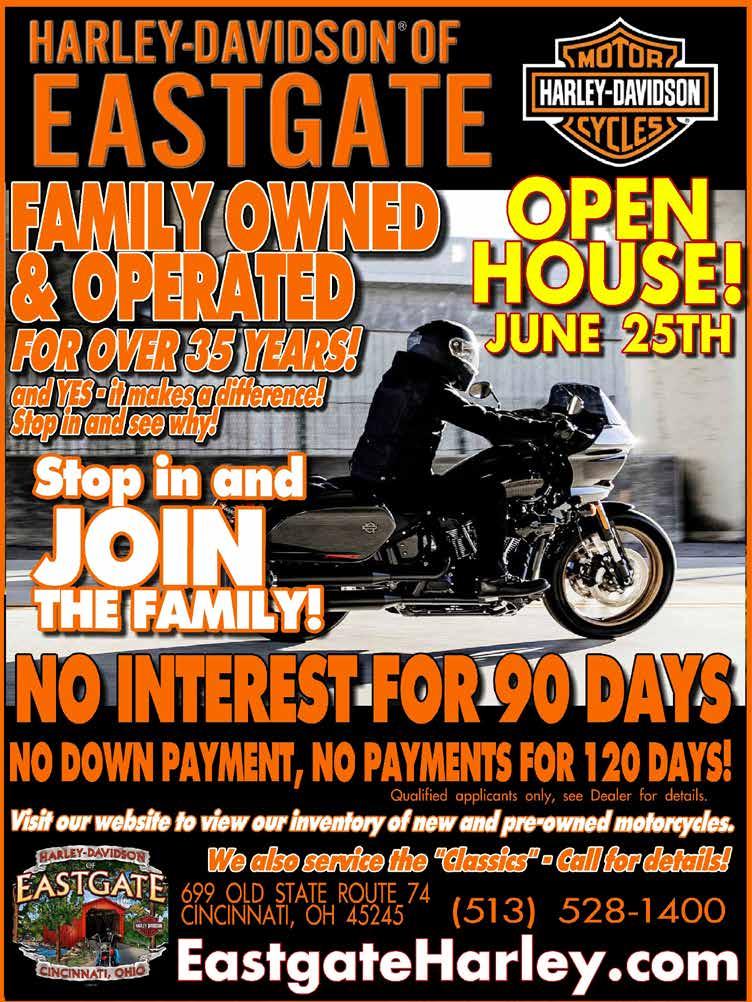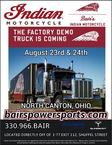 SUNBURY, OHIO 43074 (740) 965-9900 BAIR’S POWERSPORTS 4617 EMMETT BOYD CIRCLE NW NORTH CANTON, OH 44720 (330) 966-2247BAIRSPOWERSPORTS.COM BEECHMONT MOTORS 646 MOUNT MORIAH DRIVE CINCINNATI, OH 45245 (513) 752-0088 CYCLE SPECIALITIES 7220 DIXIE HWY RT 4 FAIRFIELD, OH 45014 513-860-3232 EASTGATE HARLEY-DAVIDSON 699 OLD STATE ROUTE 74 CINCINNATI, OH 45245 (513) 528-1400 FINK’S HARLEY-DAVIDSON 2650 MAYSVILLE PIKE ZANESVILLE OH 43701 740-454-0010 HALE’S HARLEY-DAVIDSON 1400 HARRINGTON MEMORIAL ROAD MANSFIELD, OHIO 44903 (419) 522-8602 HONDA EAST 1230 CONANT ST. MAUMEE, OH 43537 (877) 437-1631 MAD RIVER HARLEY-DAVIDSON 5316 STATE RT. 250/MILAN RD SANDUSKY, OH 44870 (419) 502-2244 MOTOBOUTIQUE 1800 GEORGESVILLE SQUARE DR. COLUMBUS, OH 43228 (614) 369-1333 AUTOBOUTIQUE.COM NORTH RIDGE YAMAHA 5929 NORTH RIDGE WEST (RT. 20) GENEVA, OHIO (440) 466-2712 PONY POWERSPORTS 5370 WESTERVILLE RD WESTERVILLE, OHIO 43081 (614) 942-0063 QUEEN CITY HARLEY-DAVIDSON 5960 DIXIE HIGHWAY FAIRFIELD, OH 45014 (513) 874-4343 SOUTH EAST HARLEY-DAVIDSON 23105 AURORA RD BEDFORD HEIGHTS, OH 44146 (440) 439-5300 WARREN HARLEY-DAVIDSON 2102 ELM RD CORTLAND, OH 44410 (330) 395-4700 WESTERN RESERVE HARLEY-DAVIDSON 8567 TYLER BLVD. MENTOR, OHIO 44060 (440) 974-6900