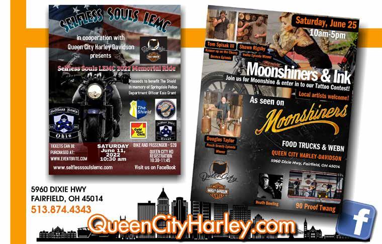 AMISH COUNTRY LEATHER 4884 W. MAIN ST. BERLIN, OH 44610 330-893-7050 AVON BOOT SHOP 38450 CHESTER RD. AVON, OH 44011 (440) 934-3230 BIKER TO BIKER CONSIGNMENT SHOP 1232 STATE ROUTE 131 MILFORD, OHIO 45150 (513) 718-7559 HEART & SOUL CUSTOM ART 4953 WEST TUSCARAWAS STREET CANTON, OH 44708 (330) 904-8843 HUDSON LEATHER 14700 OHIO 15 PIONEER, OH 43554 (419) 485-8531 MOTORCYCLE AUDIO & 12V ACCESSORIES MOTORCYCLEAUDIO12V.COM REDNECKSIDE MOTORCYCLE WHIPS 145 S LUNDY AVENUE SALEM, OH 44460 330-349-2490 THERMOHAIR 877-766-4247 WWW.THERMOHAIR.COM VIVID JEWELERS 27217 WOLF RD BAY VILLAGE, OH 44140 (440) 835-0111 ZANESVILLE TACTICAL 923 PUTNAM AVE ZANESVILLE, OH 43701 740-877-9250