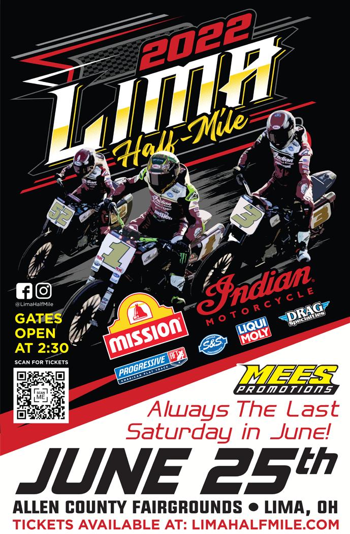 American Flat Track is back in Lima, OH at the Allen County Fairgrunds Don't miss the Lima Half-Mile highenergy motorcycle flat track racing See website (below) for more details & tickets Allen County Fairgrounds 2750 Harding Hwy,Lima,OHIO,45830