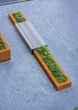 La estructura juega con la forma de los asientos y la cubierta. El eje curvo se abre tanto hacia la calle y a la espacio público detrás.