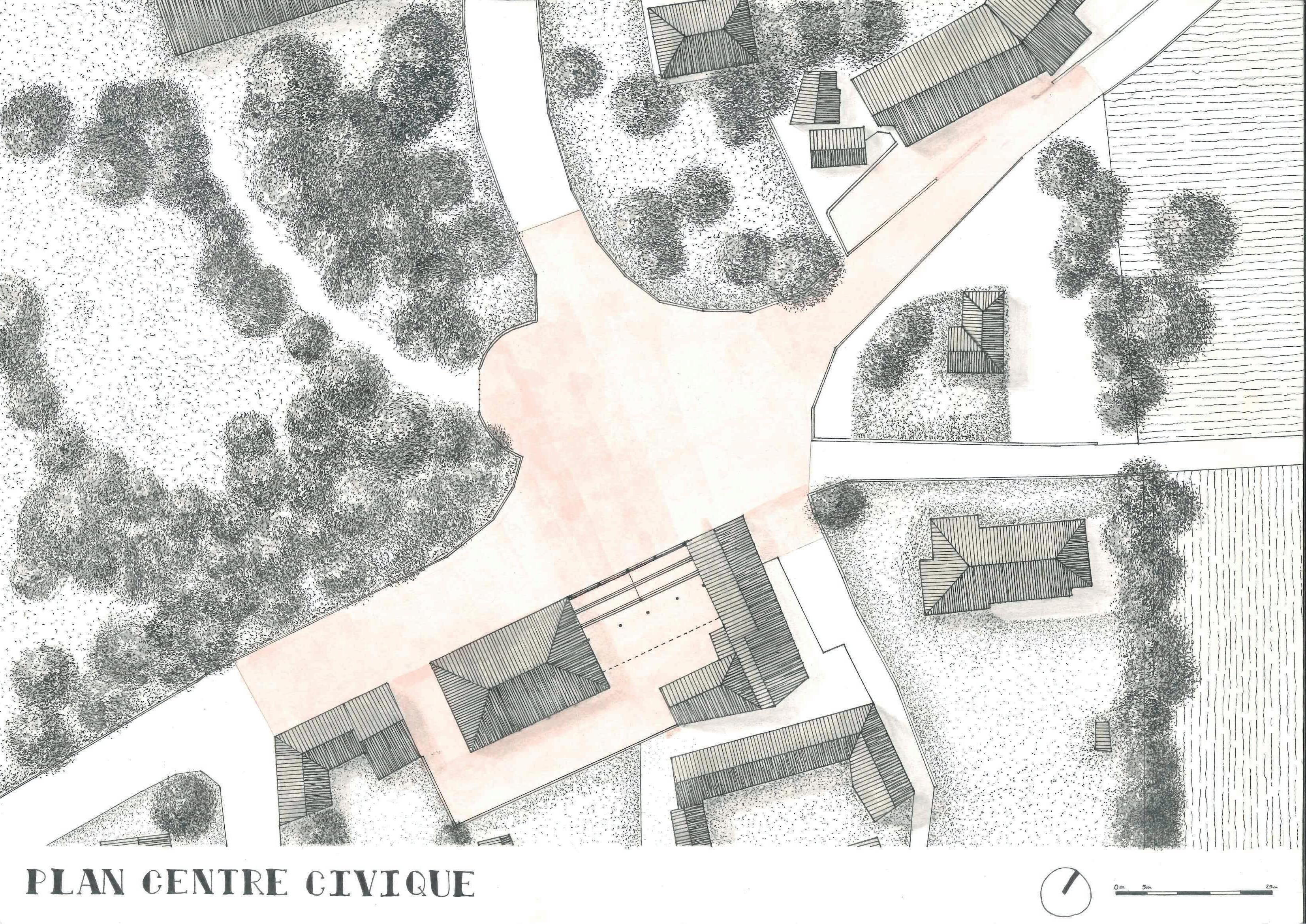 The civic centre and the town hall are very closed off from the main street that runs through the whole village, which is why the first intervention here was to open up the façade to the street and then to see the street dilated to create a more private square. Steps are placed between the main street and this square to play with the difference in level and add a new quality to this space.