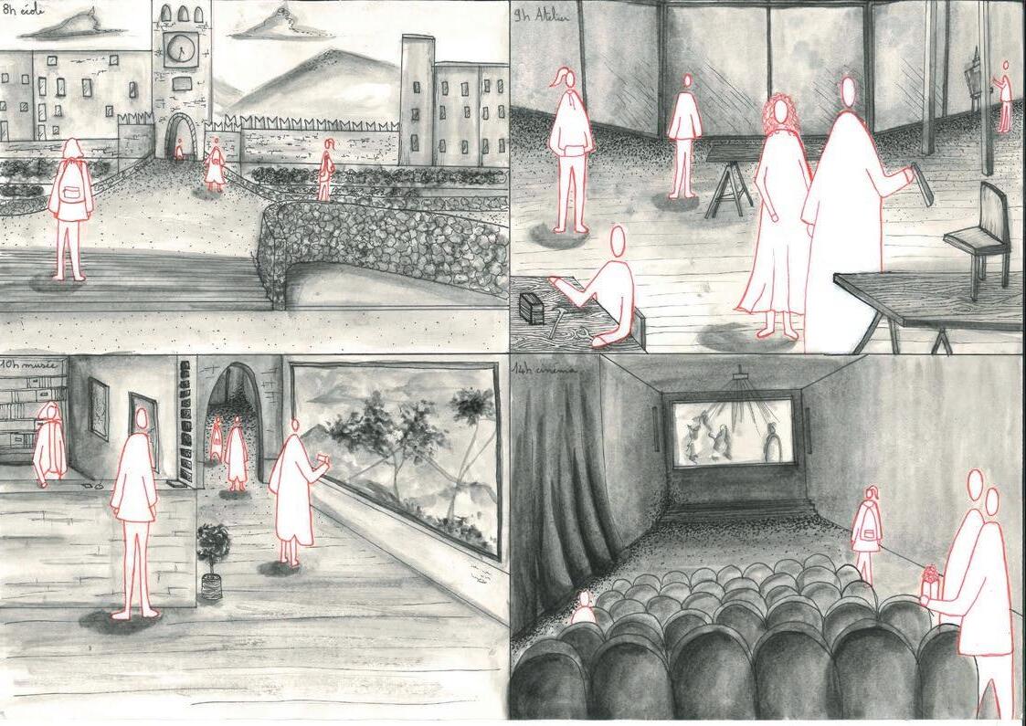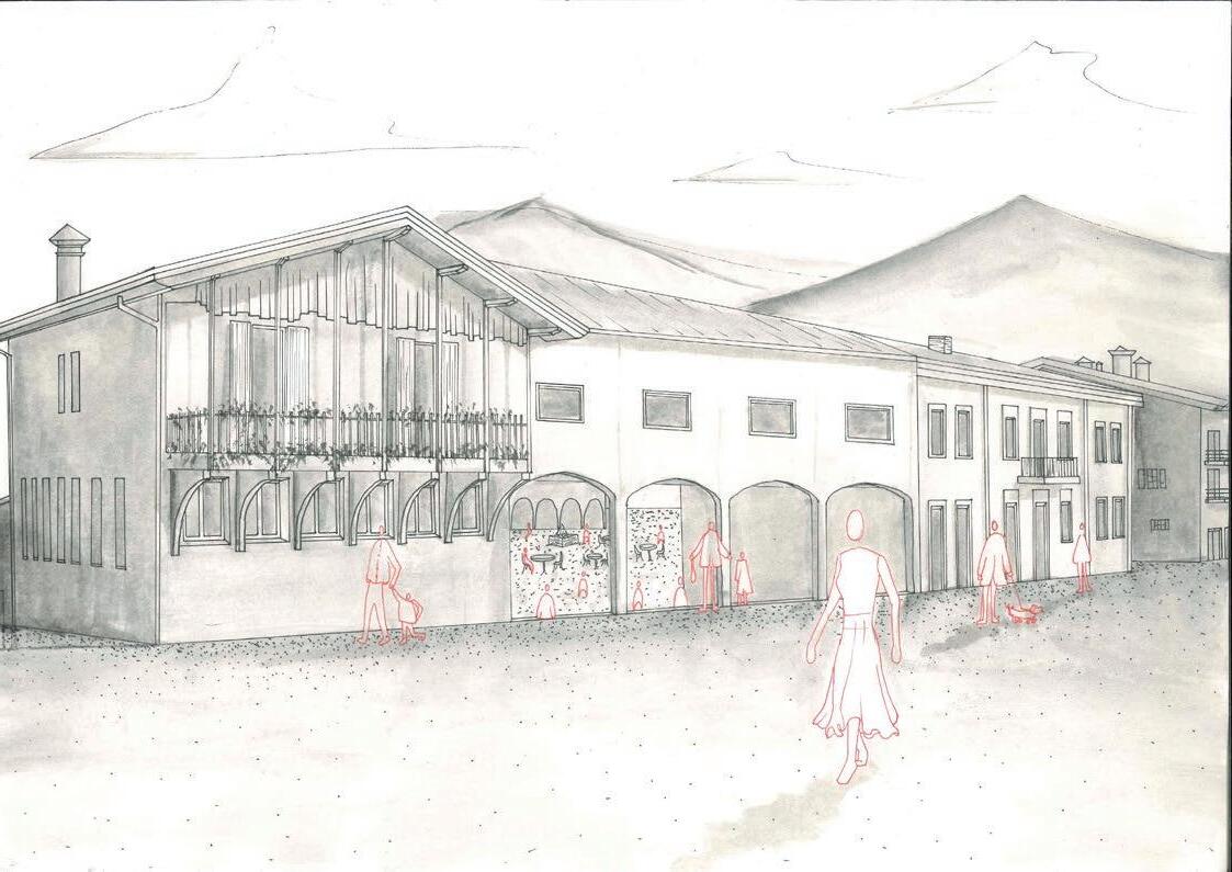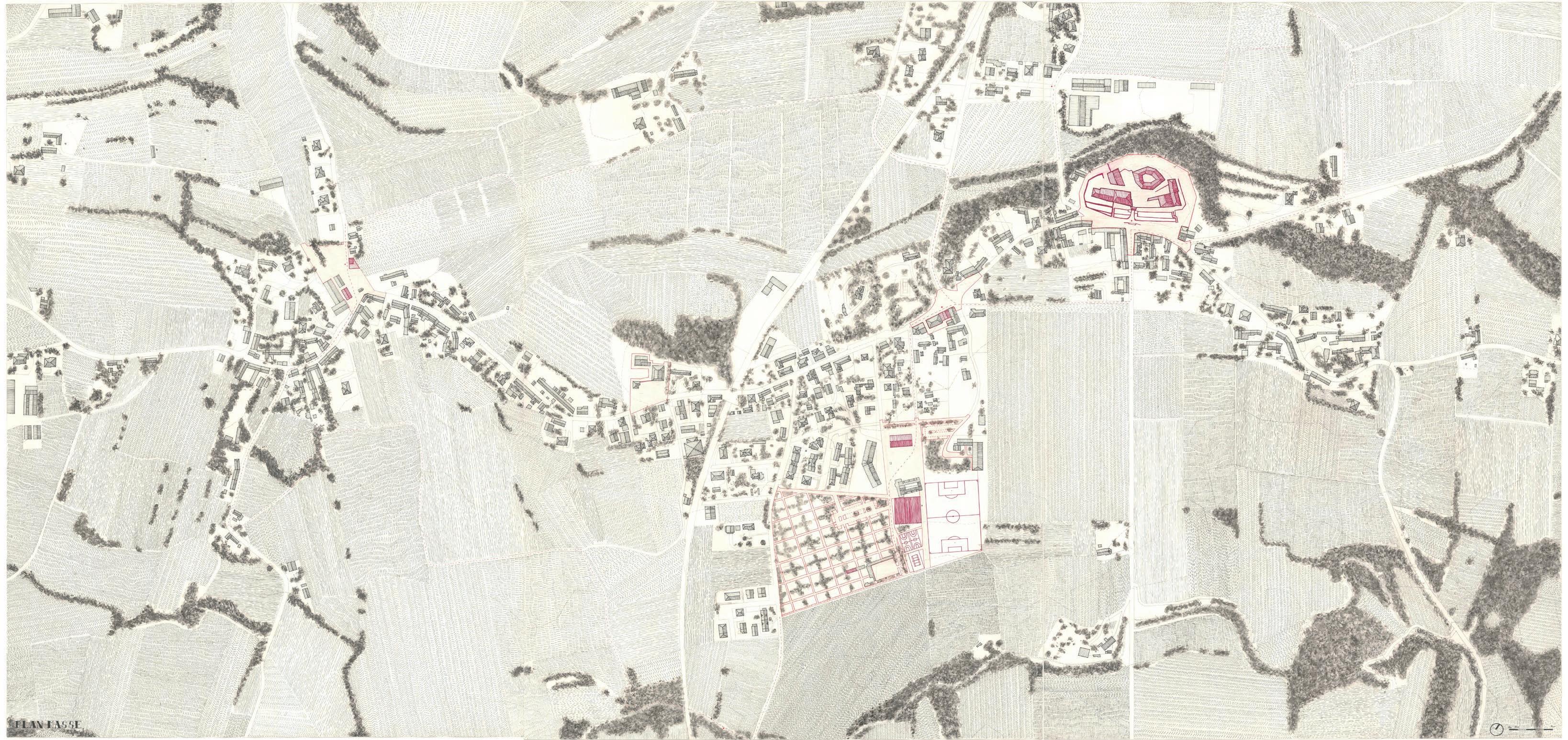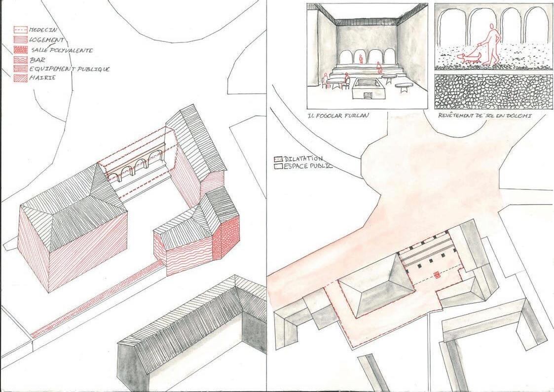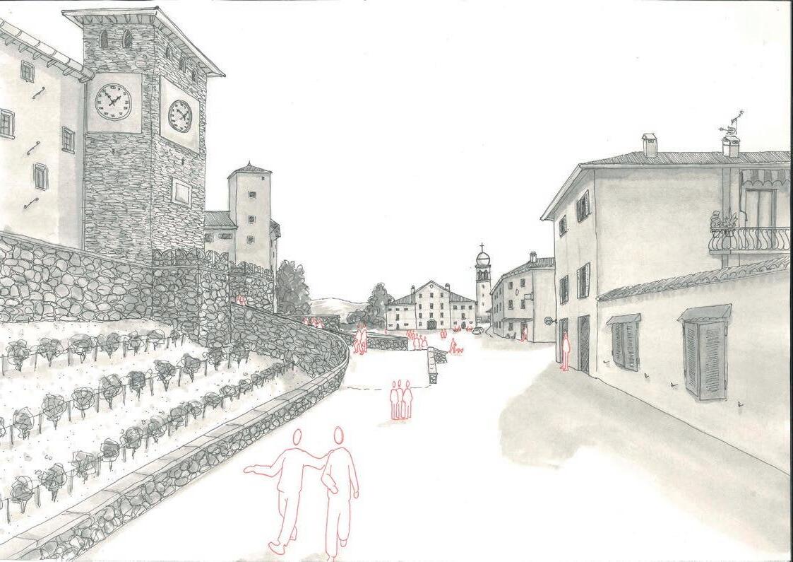 At the Mano studio, all the graphic documents are produced by hand, which makes it all very interesting because it gives you a completely different perspective. The urban planning project focused on the town of Colloredo di monte albano, an Italian village. The issues in this village are public spaces, there are no places to gather.
