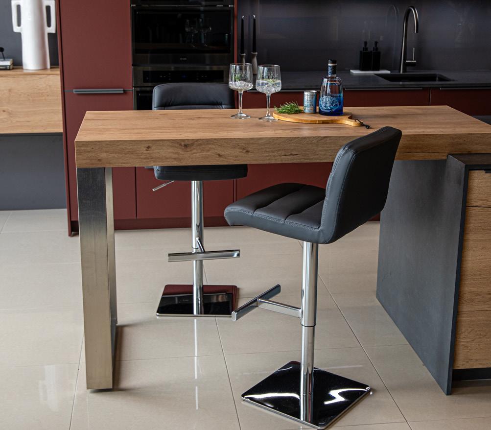 The luxorious materials availalbe in this collection combined with the slic and stylish, black fixed height frames, allow you to complete your kitchen area with a truly exquisite piece of furniture.