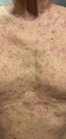 Homme de 73 ans, présentant un rash type urticaire 72h après l'injection d'anti-inflammatoires non stéroïdiens.
