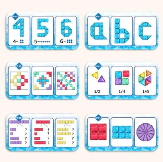 Learn through play with Coblo! This set contains 14 activity cards with a total of 74 educational tasks to help children develop in a fun and inspiring way in areas such as colors, shapes, numbers, letters, and more. Using these activity cards, children are introduced to educational topics in a playful manner. The cards can be used for a wide range of learning objectives. With Coblo’s activity cards, children don’t just create the largest structures using their own imagination and creativity. They also learn to count, do math, write, and more through playful learning.