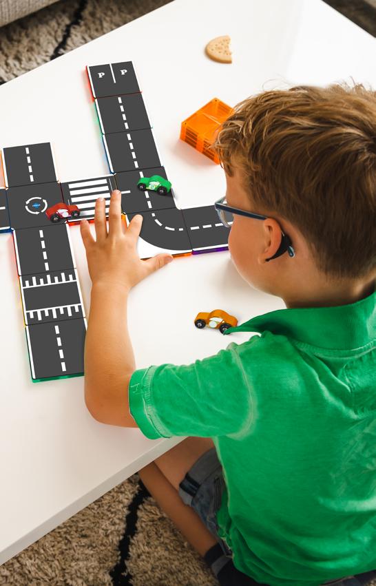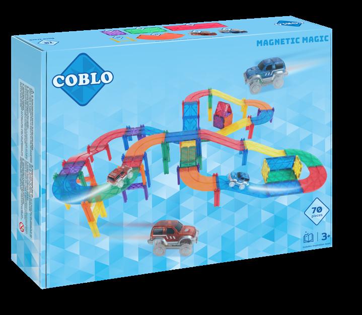 With Coblo’s 70 pieces race track sets, children can build their own version of a race track. Each time a different construction, all designed by themselves. The race tracks are also fun to combine with Coblo’s basic magnetic tiles.