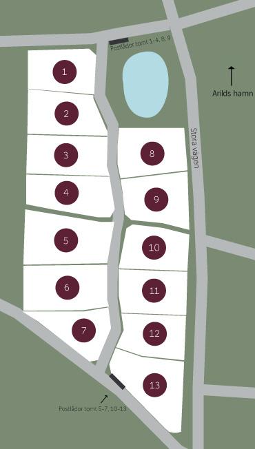 Gemensamma postlådor kommer placeras utanför tomt 13 samt vid dagvattendammen.