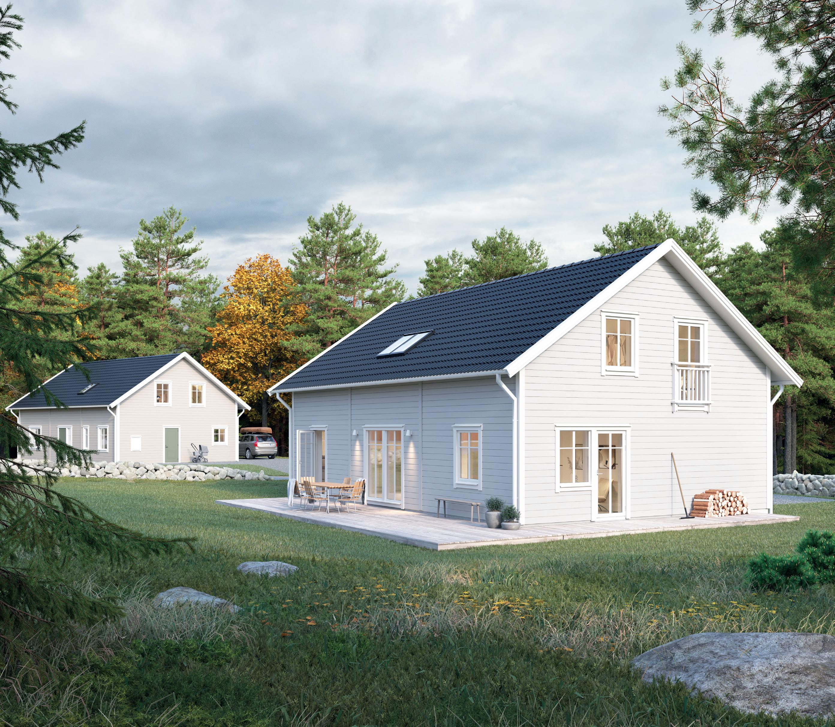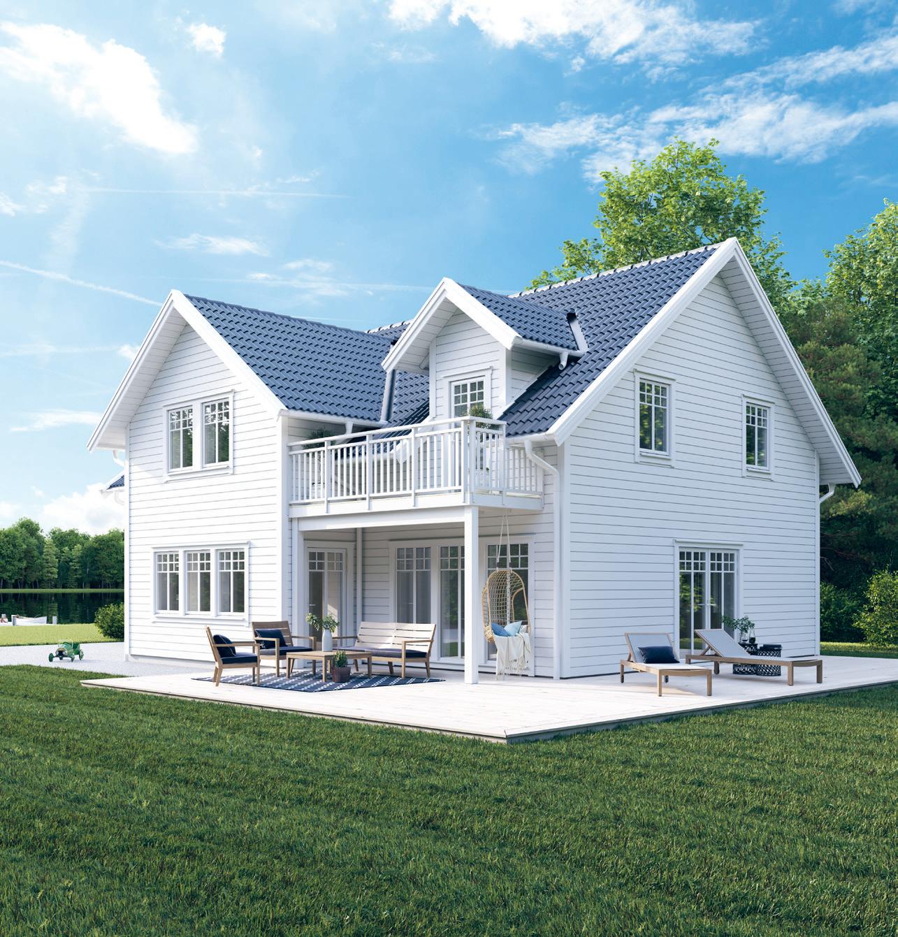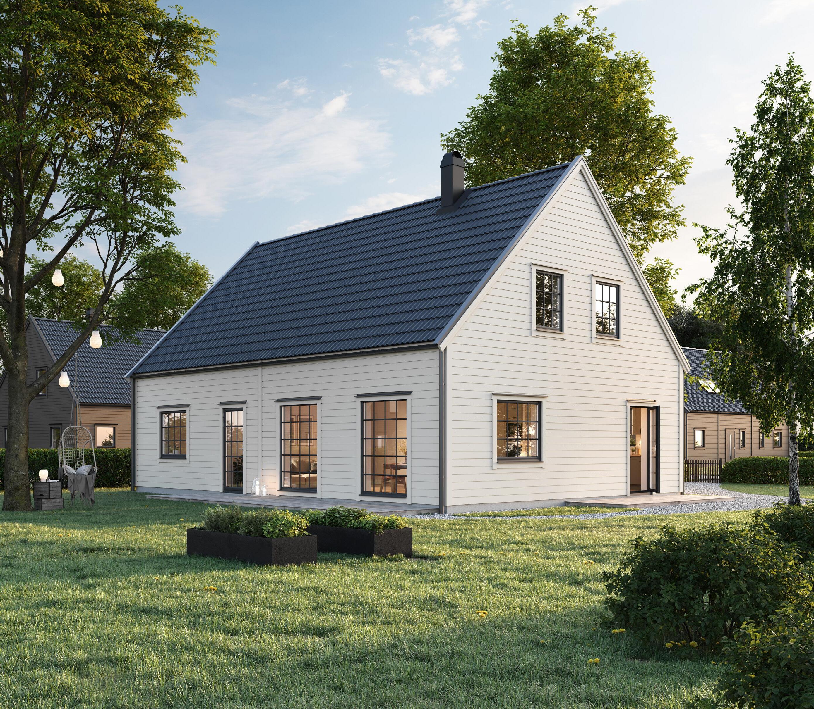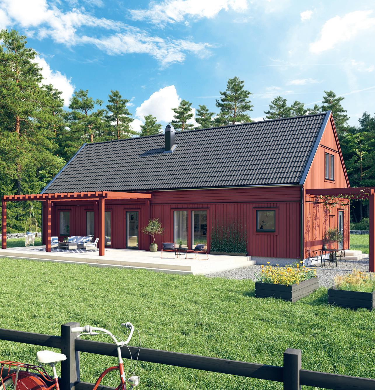 I vårt utbud finns över 35 husmodeller. Dessa kallar vi våra Favorithem. 1-plan 1,5-plan och 2-planshus. Alla finns, dessutom med olika stilar och planlösningar. Börja med dina behov. Hur många sovrum behöver du? Vill du ha en eller två våningar? Stående eller liggande panel? Modernt eller klassiskt utseende? När du hittat en modell att utgå ifrån har du tagit första steget och sedan anpassar för att sätta din personliga prägel.