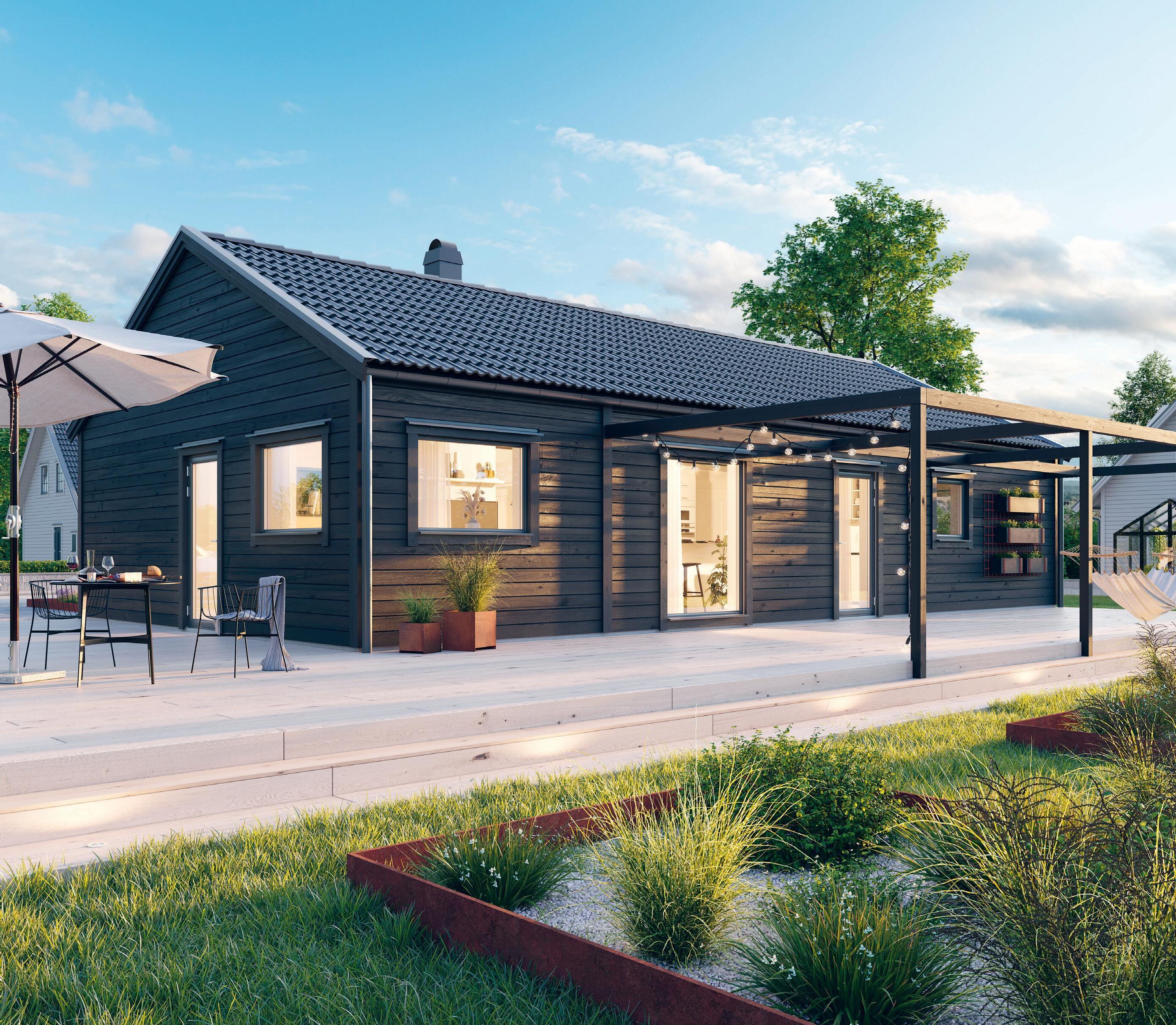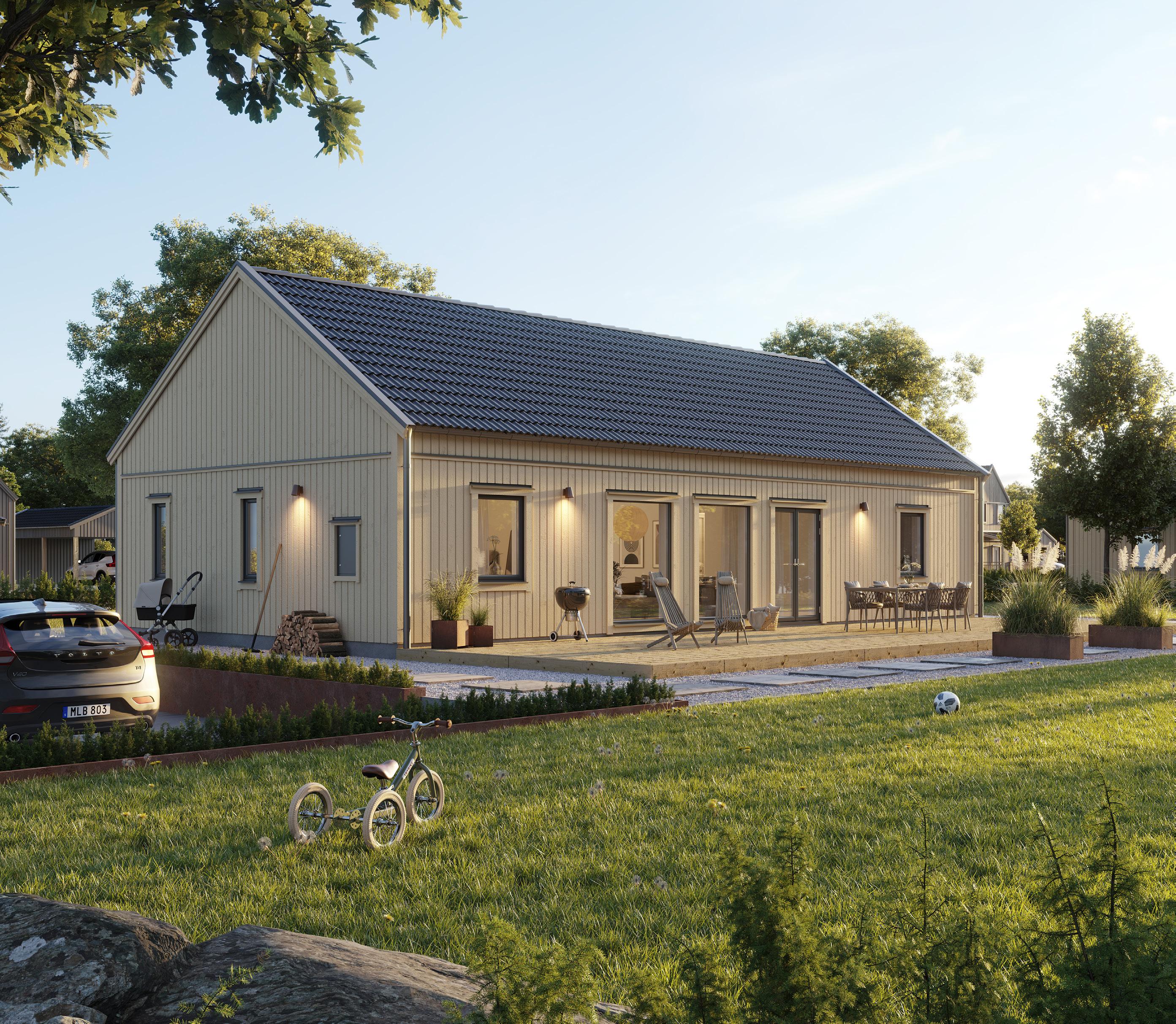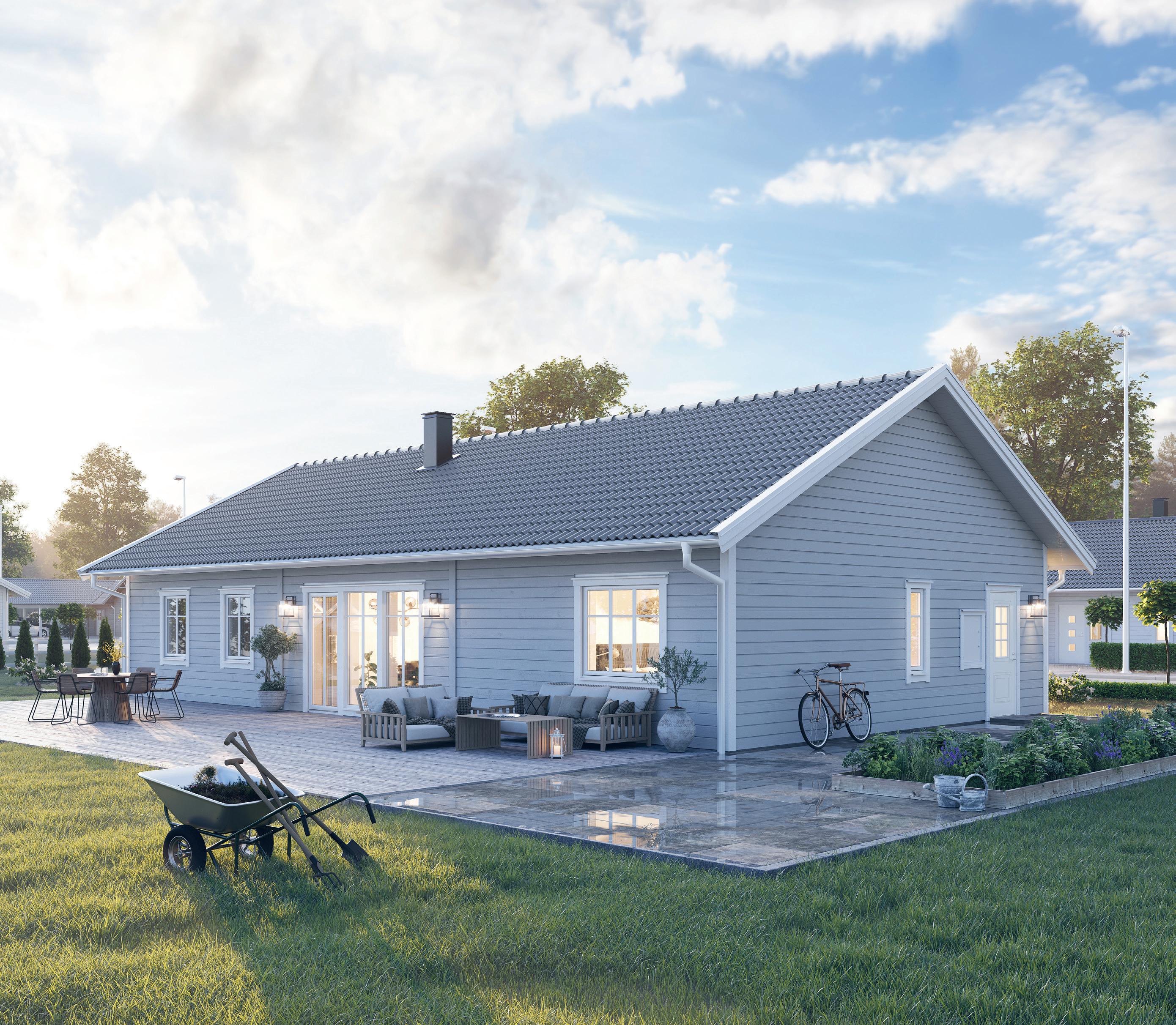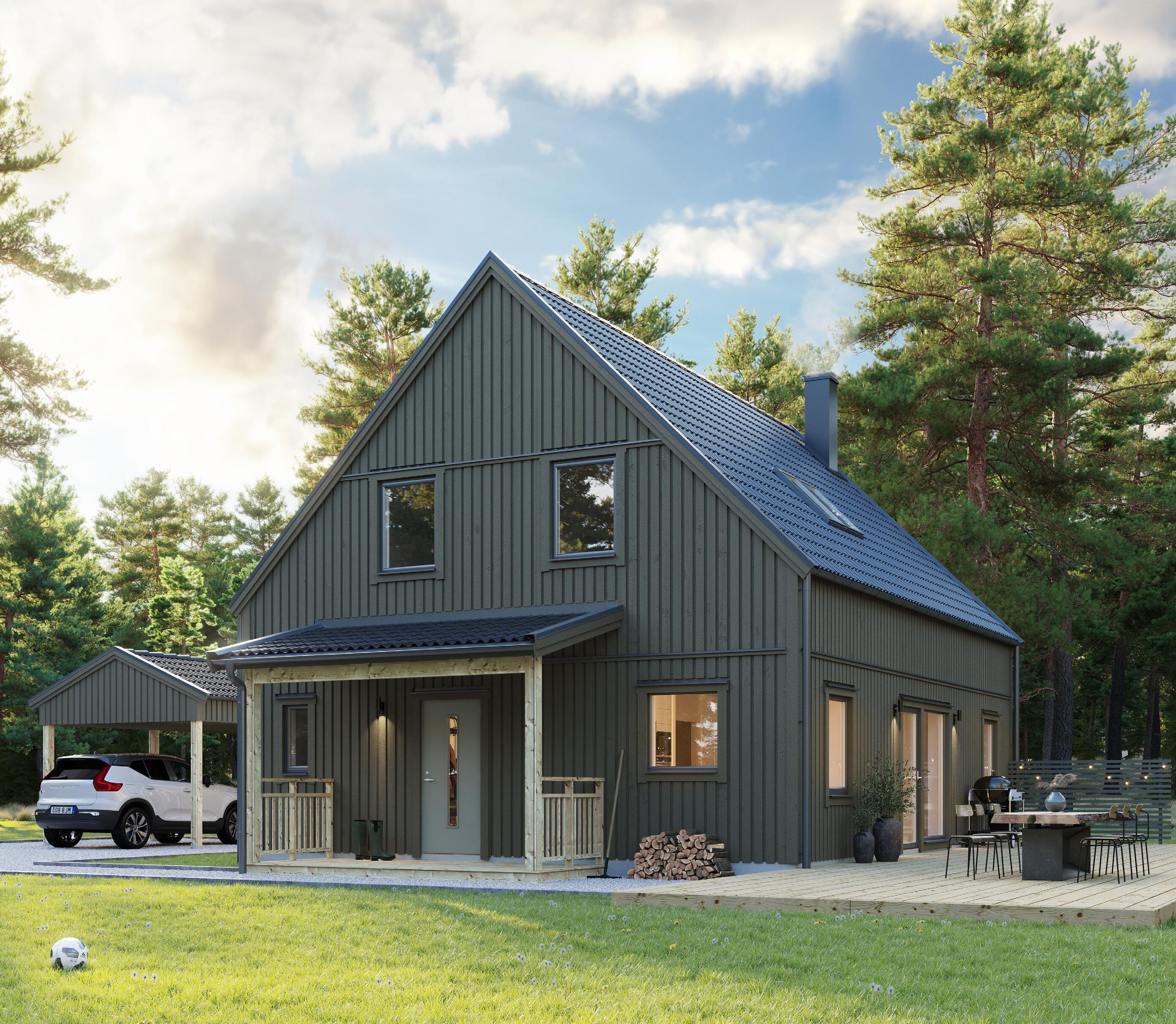I vårt utbud finns över 35 husmodeller. Dessa kallar vi våra Favorithem. 1-plan 1,5-plan och 2-planshus. Alla finns, dessutom med olika stilar och planlösningar. Börja med dina behov. Hur många sovrum behöver du? Vill du ha en eller två våningar? Stående eller liggande panel? Modernt eller klassiskt utseende? När du hittat en modell att utgå ifrån har du tagit första steget och sedan anpassar för att sätta din personliga prägel.