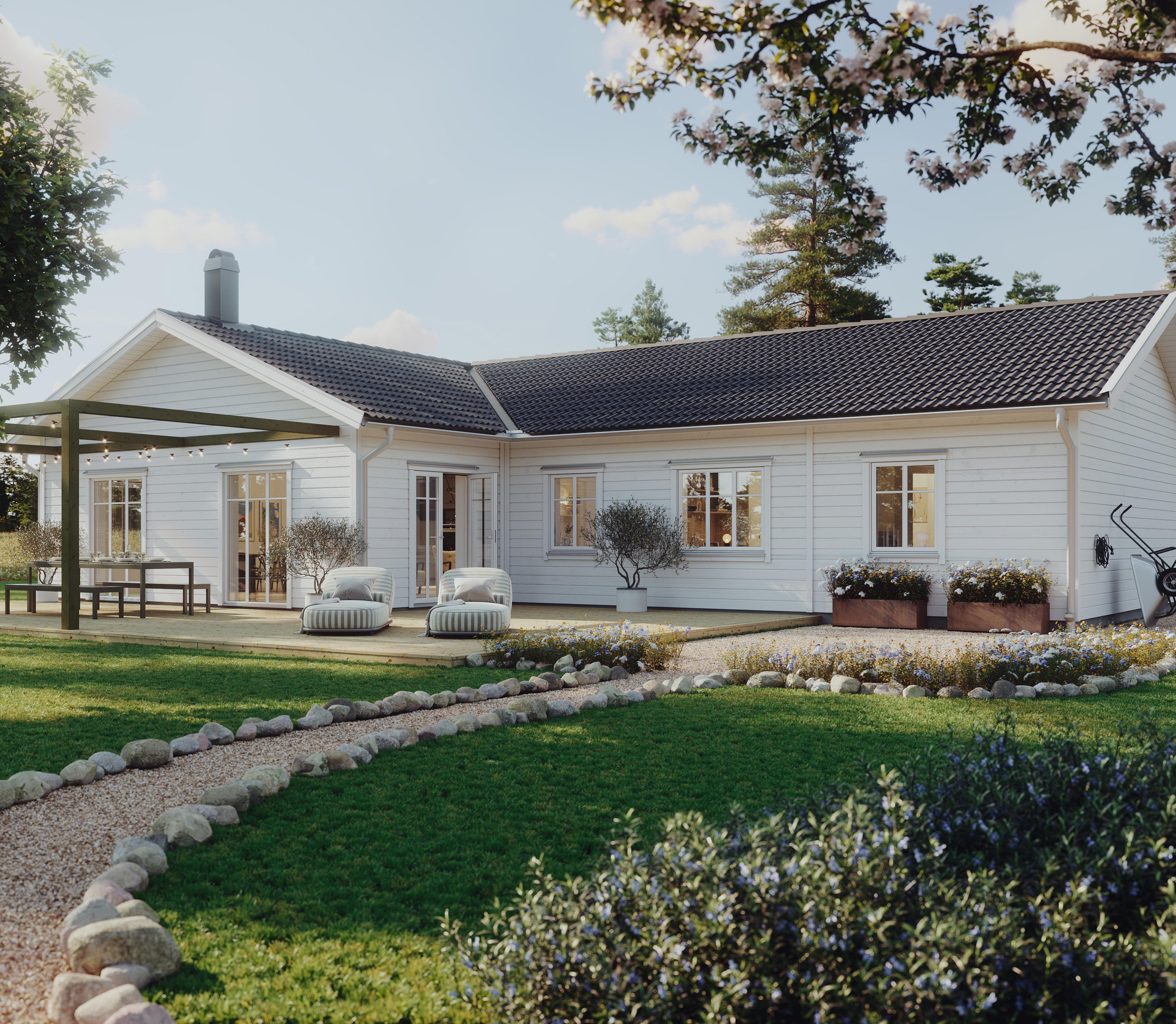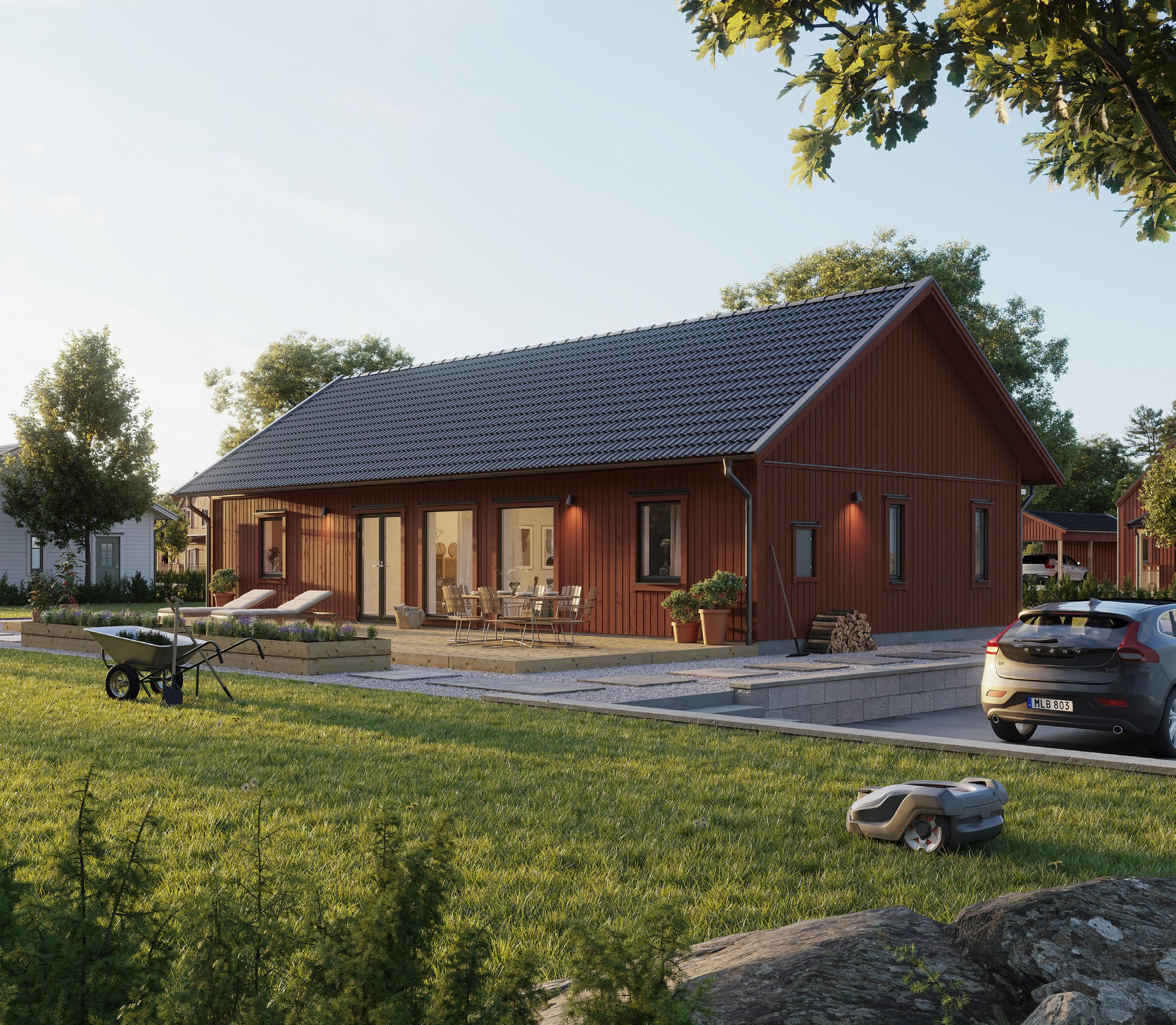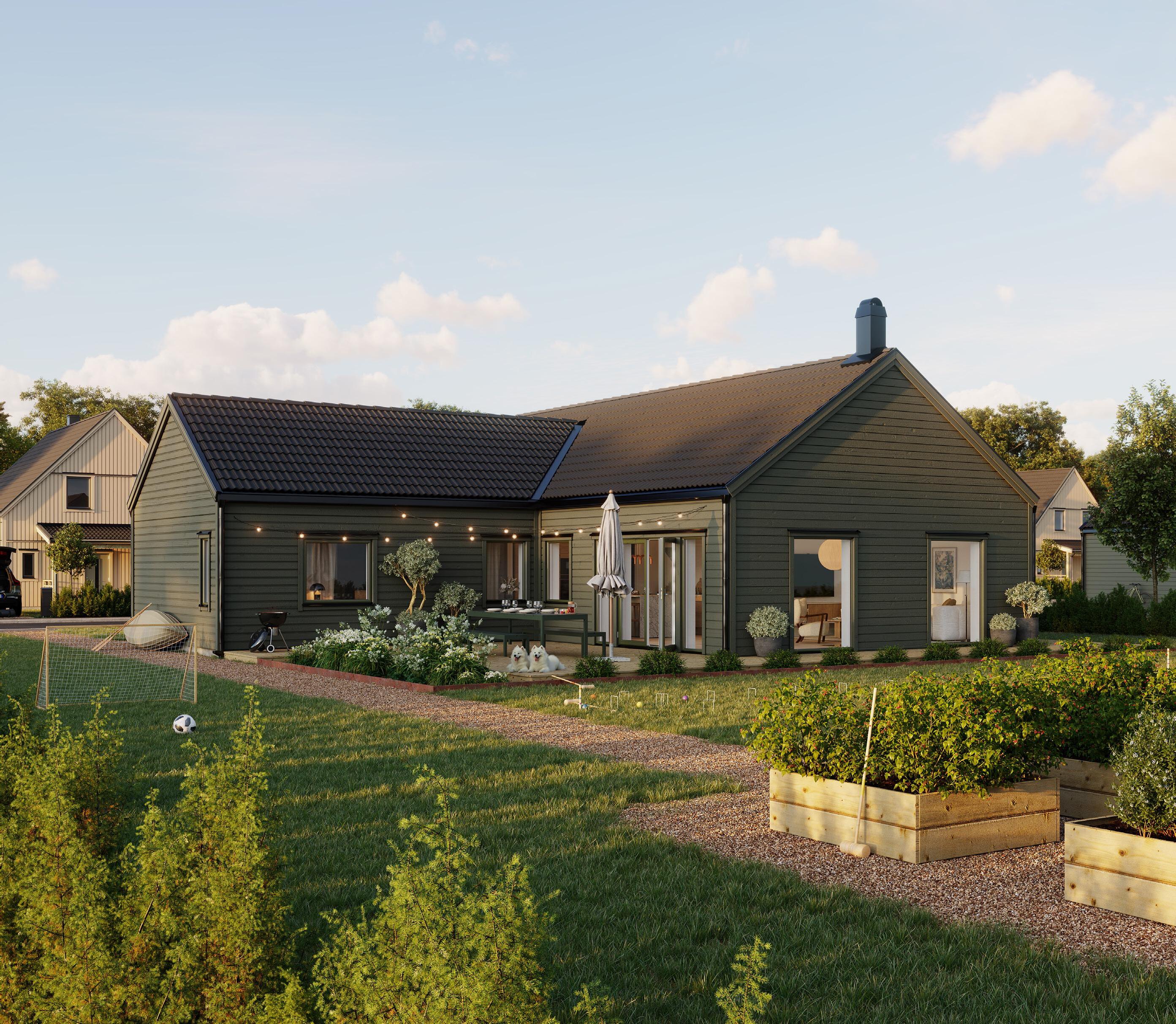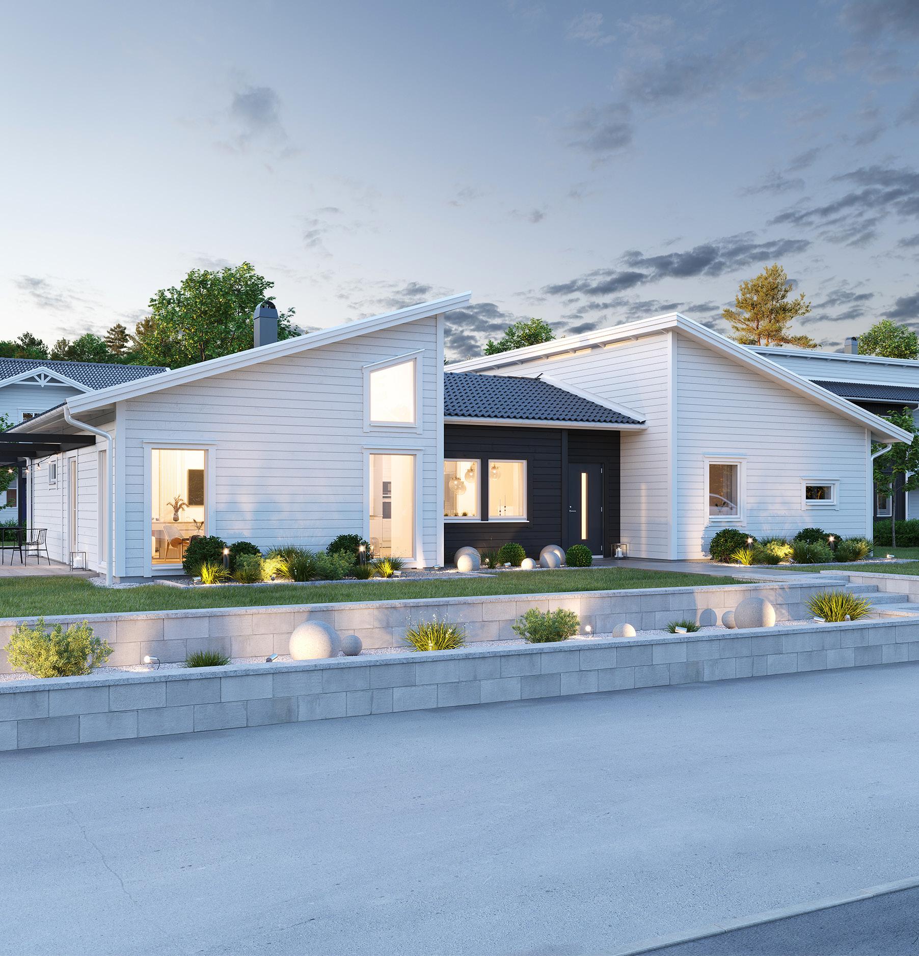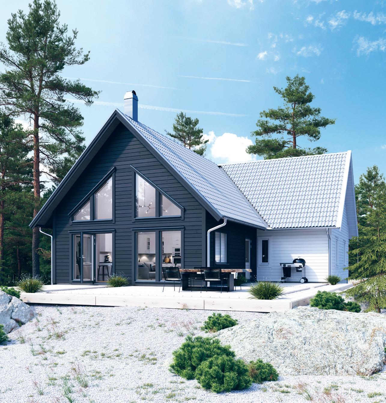 I vårt utbud finns över 35 husmodeller. Dessa kallar vi våra Favorithem. 1-plan 1,5-plan och 2-planshus. Alla finns, dessutom med olika stilar och planlösningar. Börja med dina behov. Hur många sovrum behöver du? Vill du ha en eller två våningar? Stående eller liggande panel? Modernt eller klassiskt utseende? När du hittat en modell att utgå ifrån har du tagit första steget och sedan anpassar för att sätta din personliga prägel.