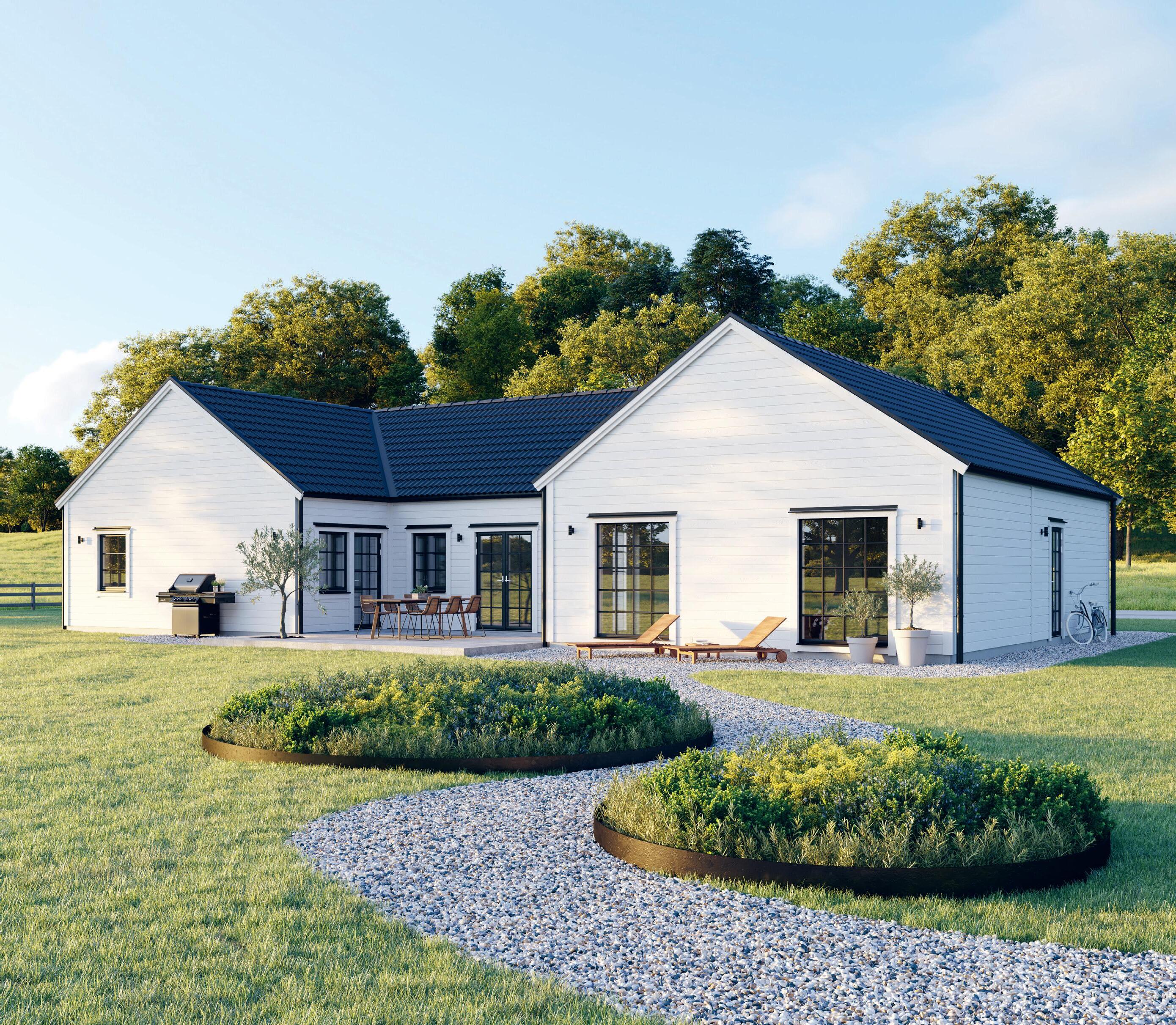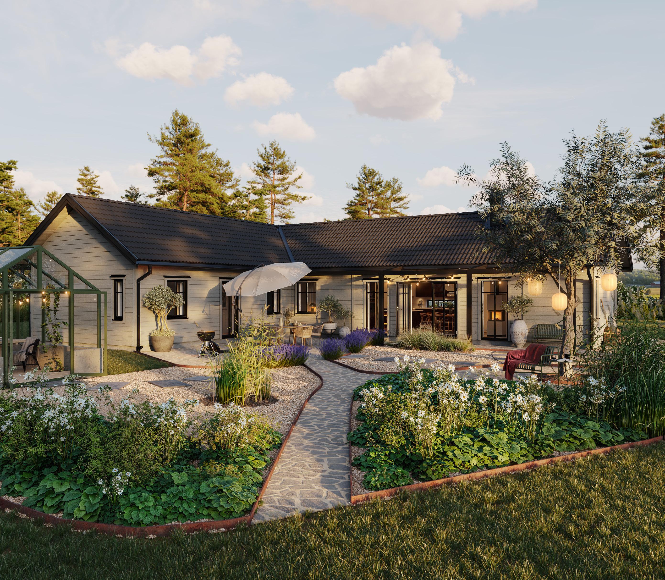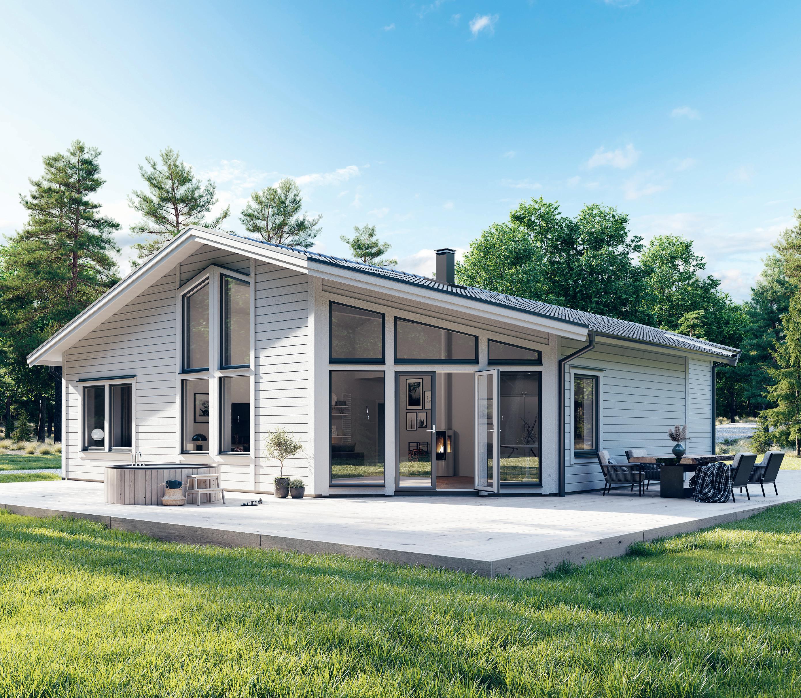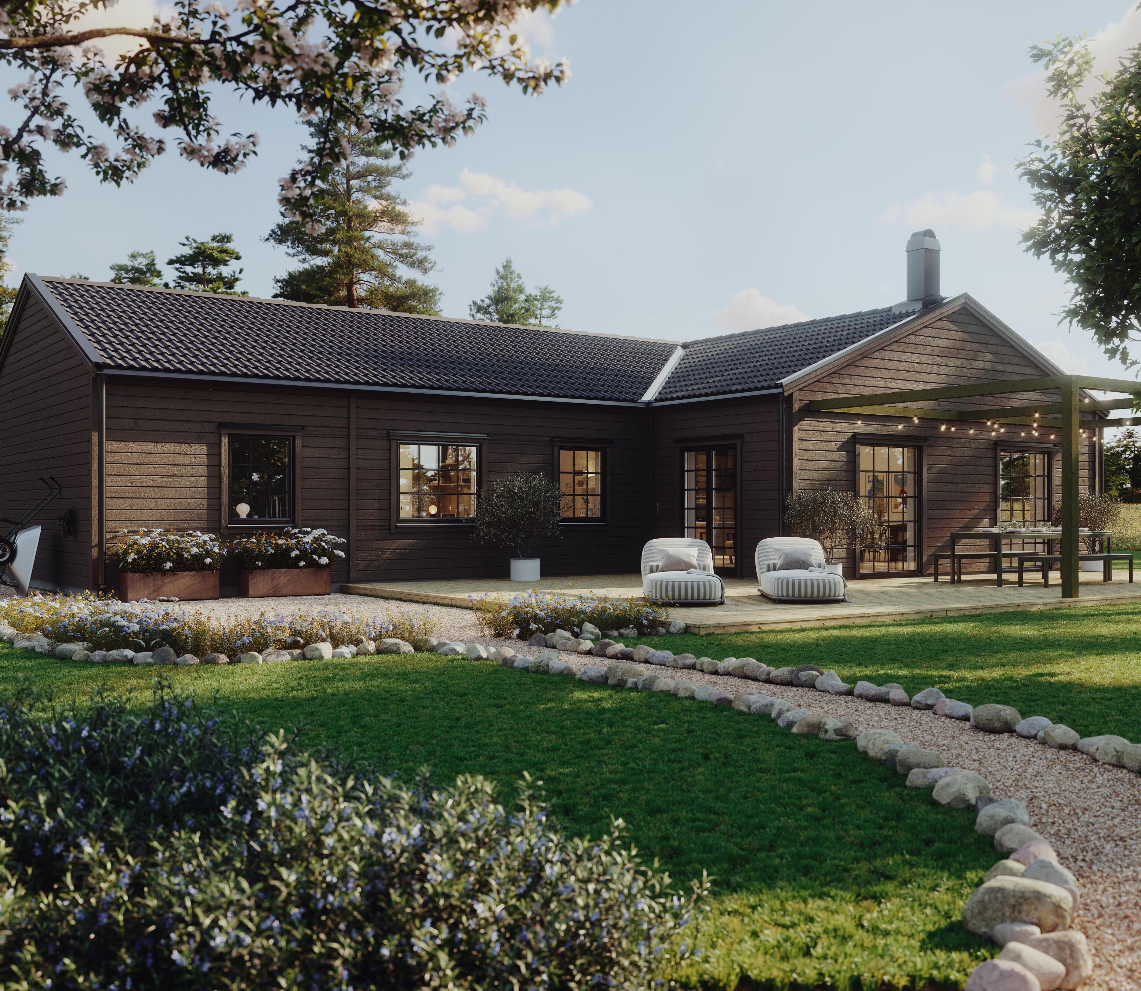 I vårt utbud finns över 35 husmodeller. Dessa kallar vi våra Favorithem. 1-plan 1,5-plan och 2-planshus. Alla finns, dessutom med olika stilar och planlösningar. Börja med dina behov. Hur många sovrum behöver du? Vill du ha en eller två våningar? Stående eller liggande panel? Modernt eller klassiskt utseende? När du hittat en modell att utgå ifrån har du tagit första steget och sedan anpassar för att sätta din personliga prägel.