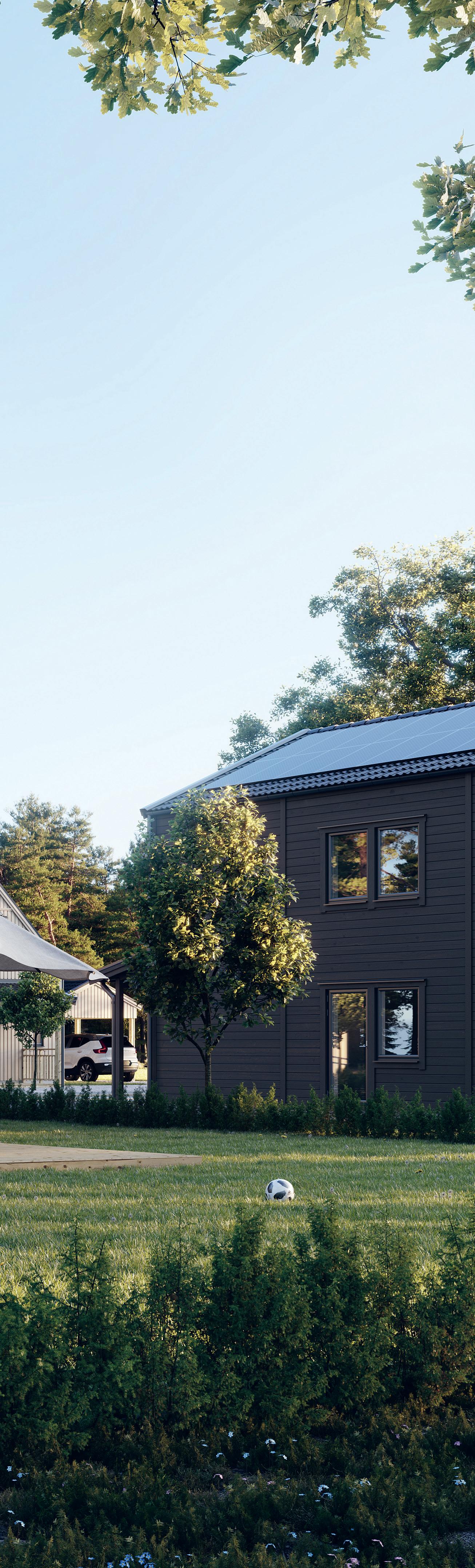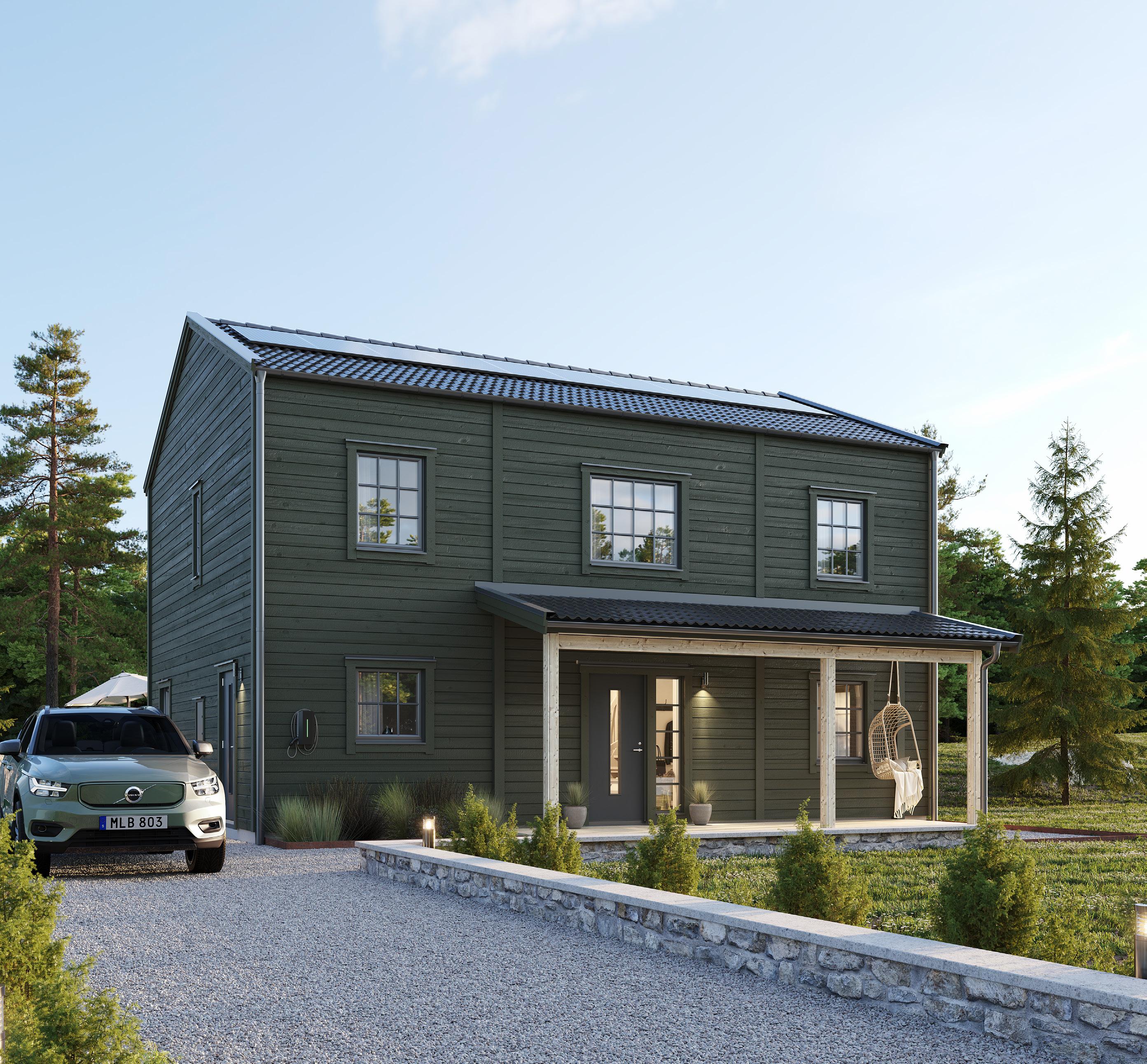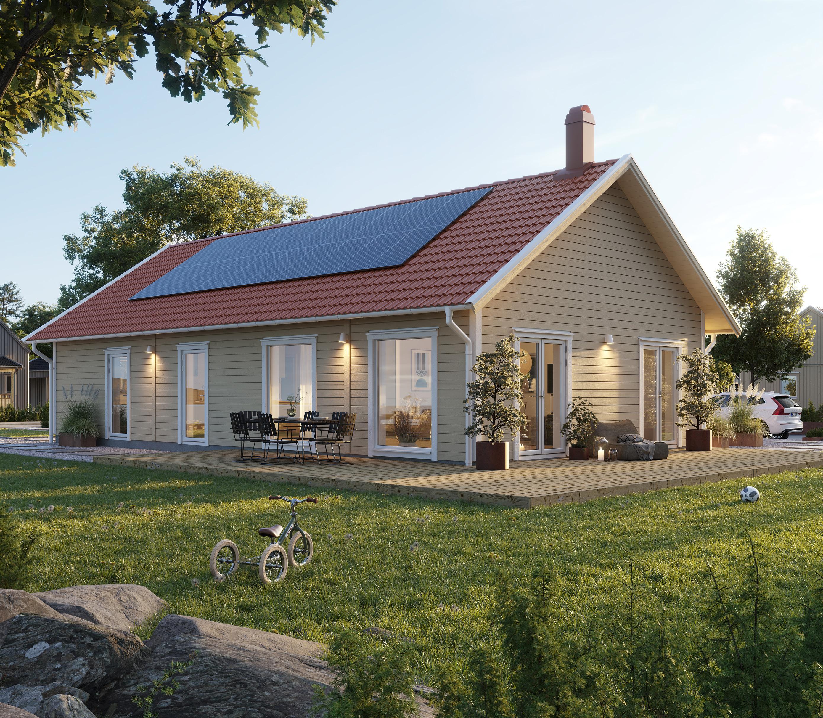 Ett trähus från oss i Stockholmsregionen drar i snitt 35 kWh per kvadratmeter och år. Det vi vill säga med det är att huset är energisnålt och kommer vara snällt mot din plånbok. Vill du sänka din månadskostnad ytterligare finns möjlighet till färdigmonterade solceller.