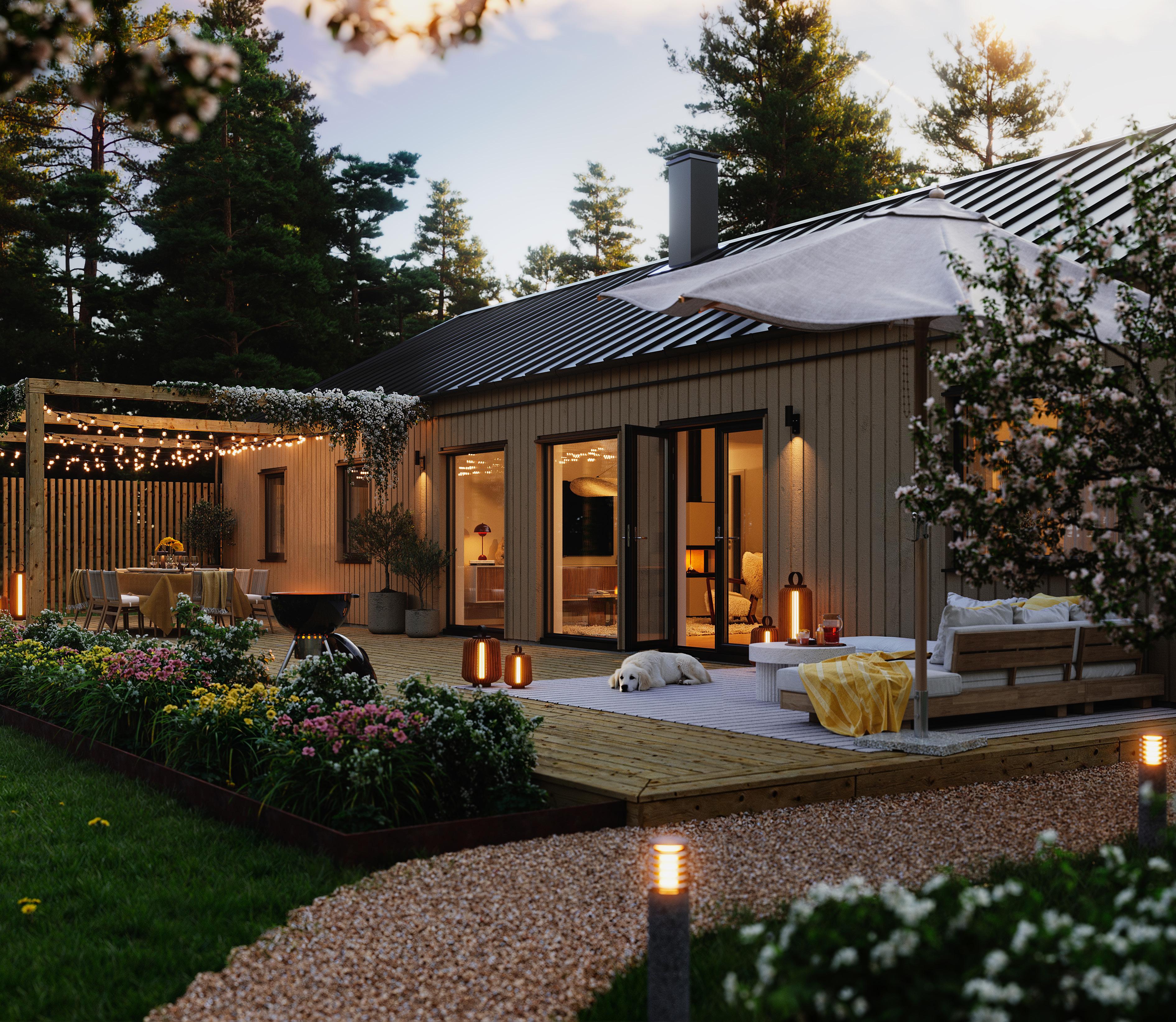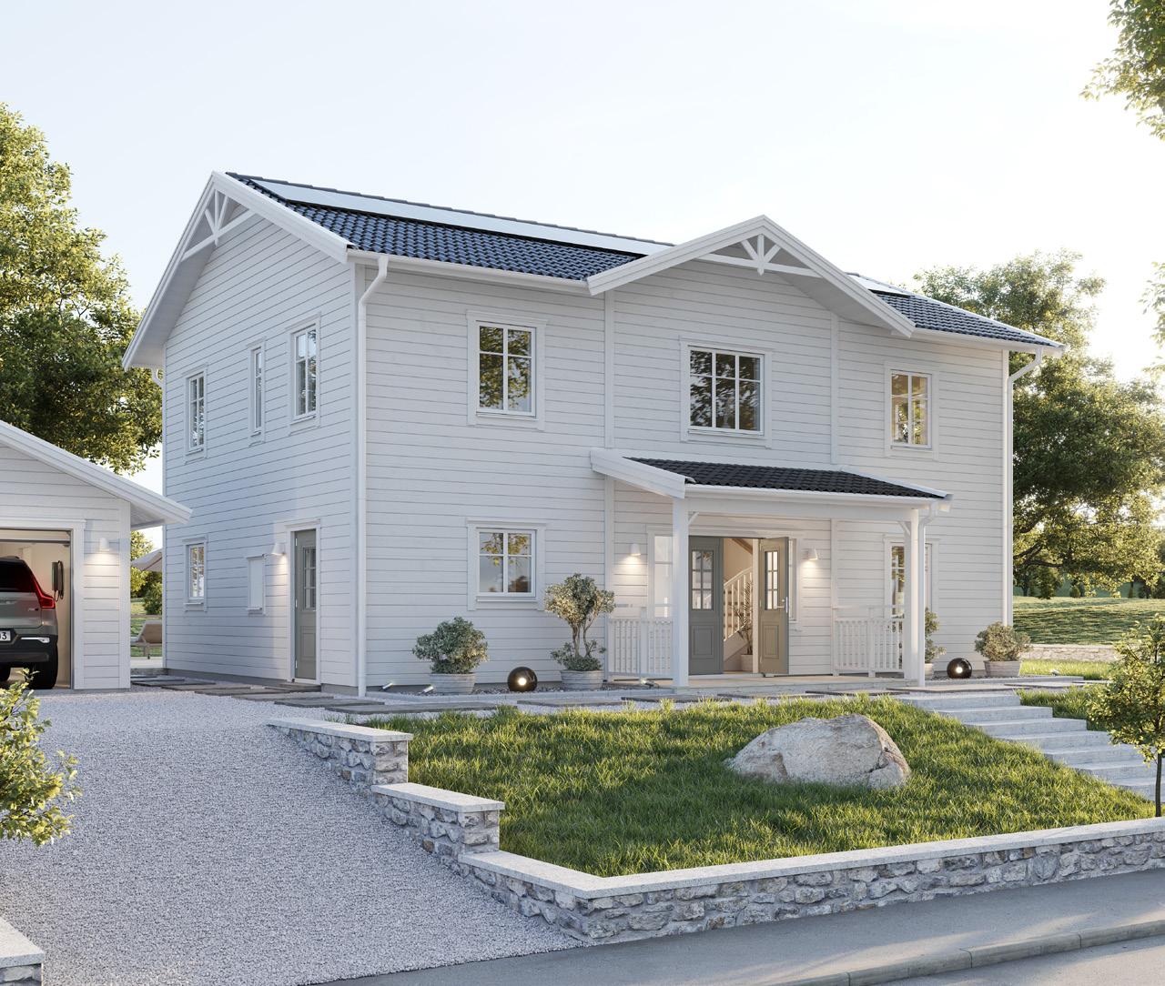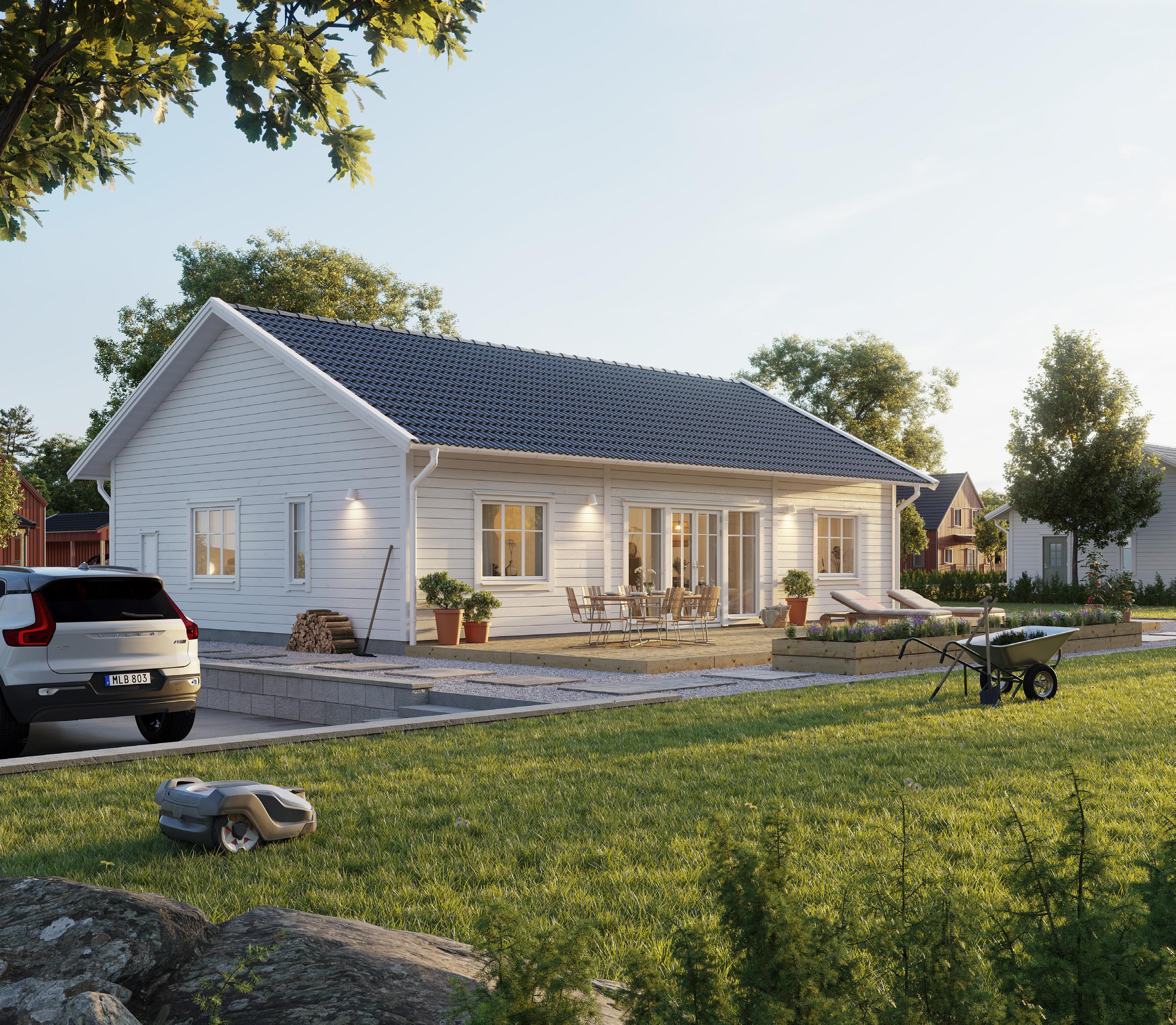 Ett trähus från oss i Stockholmsregionen drar i snitt 35 kWh per kvadratmeter och år. Det vi vill säga med det är att huset är energisnålt och kommer vara snällt mot din plånbok. Vill du sänka din månadskostnad ytterligare finns möjlighet till färdigmonterade solceller.