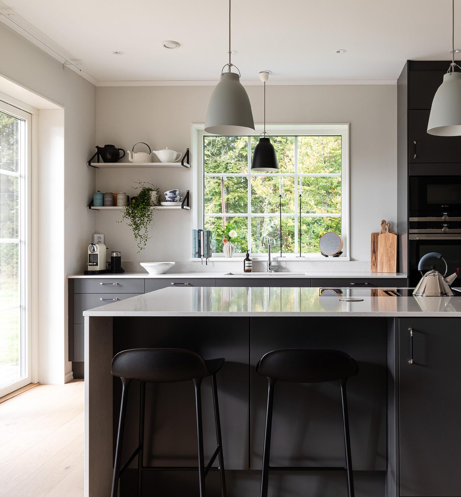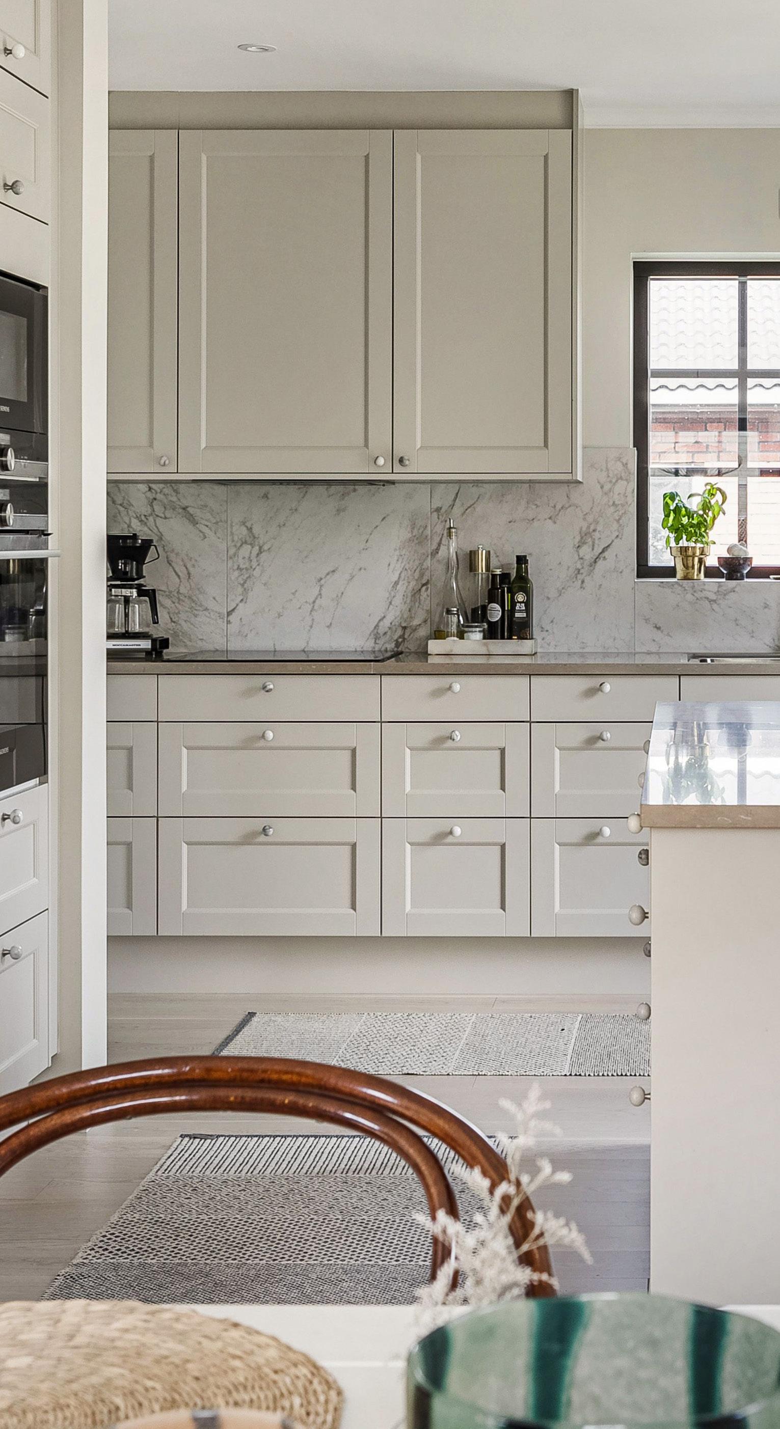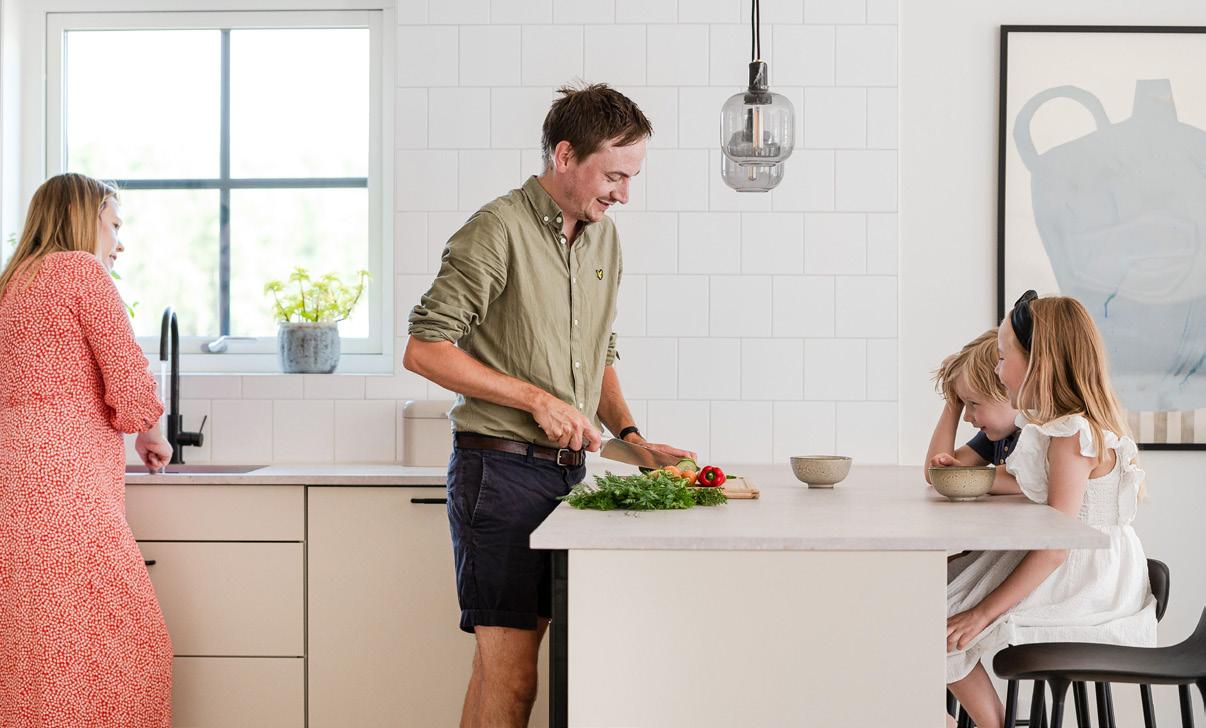 - Köket hade vi både en klar bild över hur vi önskade placering och installationer. Vi var egentligen lite oense om färgen på köksluckorna, svarar Cecilia och ler mot Oscar, men till slut blev det en naturfärgad ton både på luckor och bänkskiva. Integrerad kyl och frys samt vinkyl, var något som vi både verkligen ville ha, och sen är vi så glada för vår köksö. Det är där vi äter frukost, gör läxor, tar eftermiddagsfikan och umgås med våra gäster under tiden vi småfixar i köket. Den skulle vi aldrig vilja vara utan.