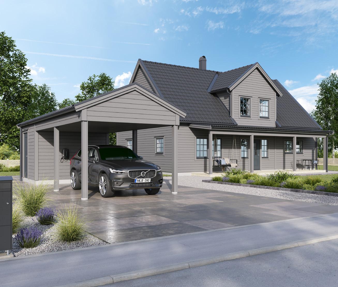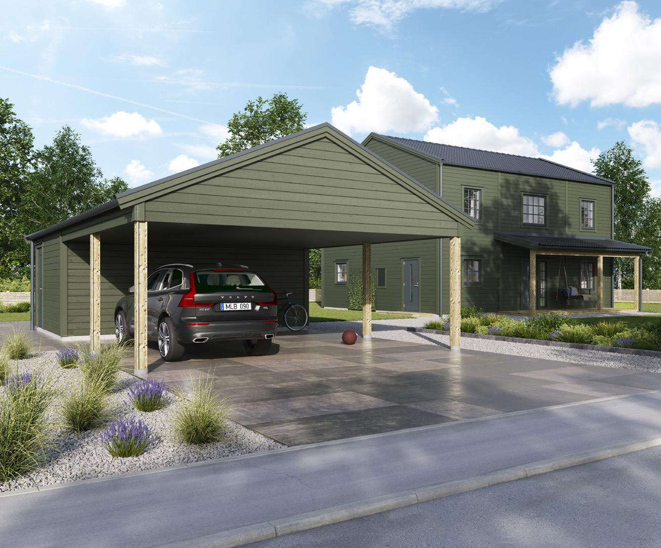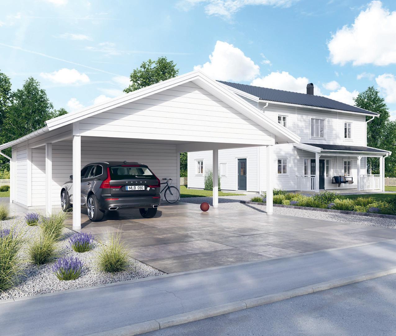 Vill du ha ett garage, en carport eller kanske en entréveranda till ditt nya hus? Här hittar du vilka varianter som vi kan erbjuda.