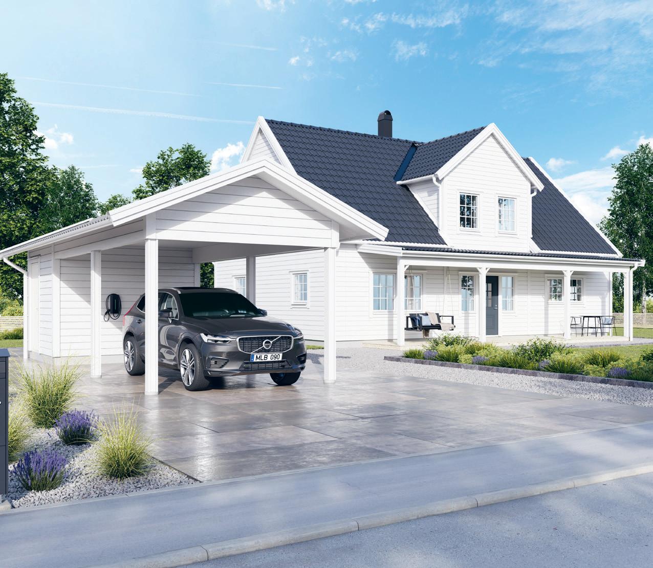 Den här sidan visar enbart våra friliggande carportar med minimal takfot. Det går att få dem sammanbyggda med våra kundanpassade hus.
