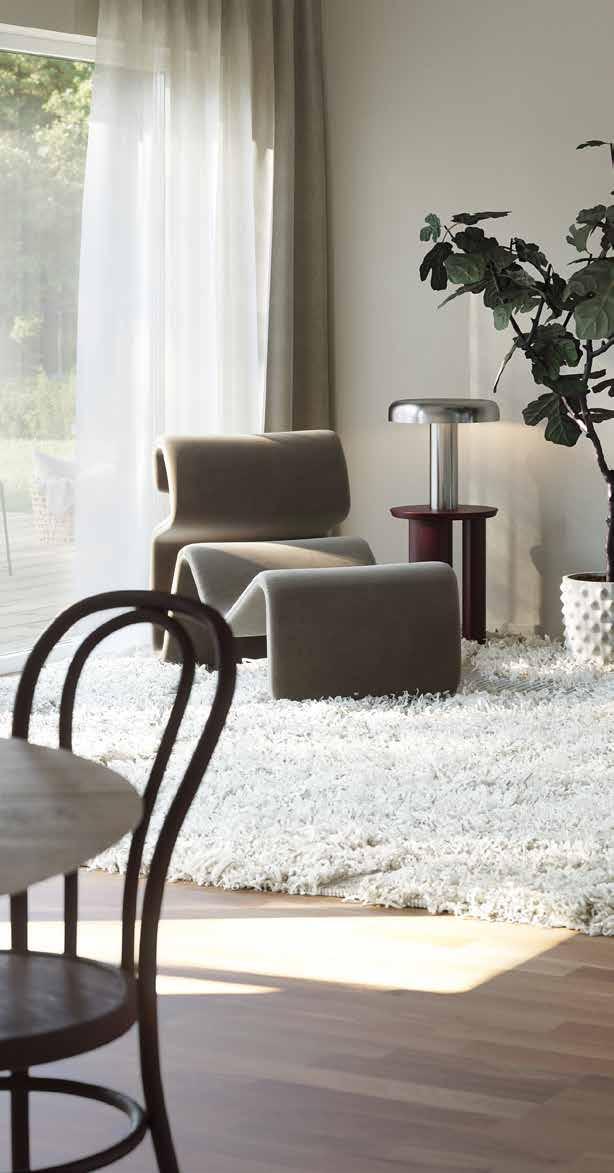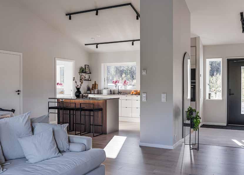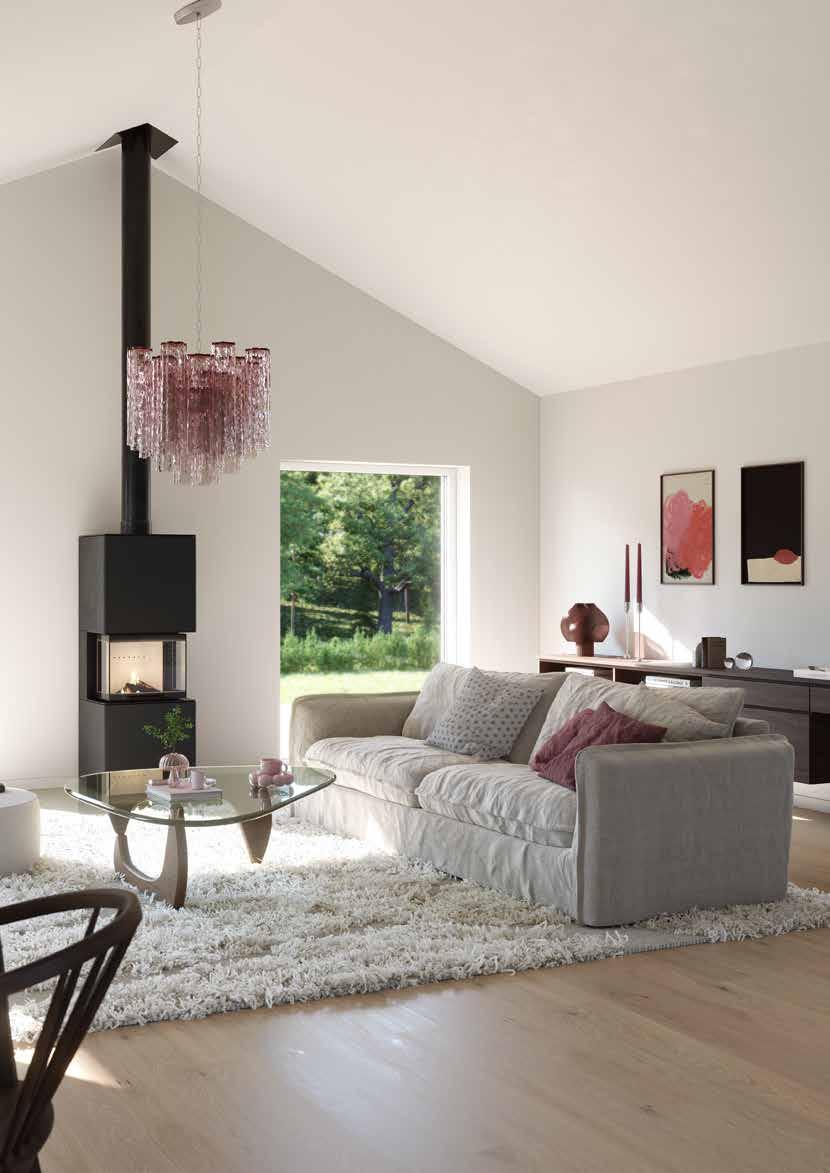 • Isolering i tre skikt ger en mycket god energiprestanda. Väggkonstruktionen dämpar ljud effektivt och ger ett tyst hus.