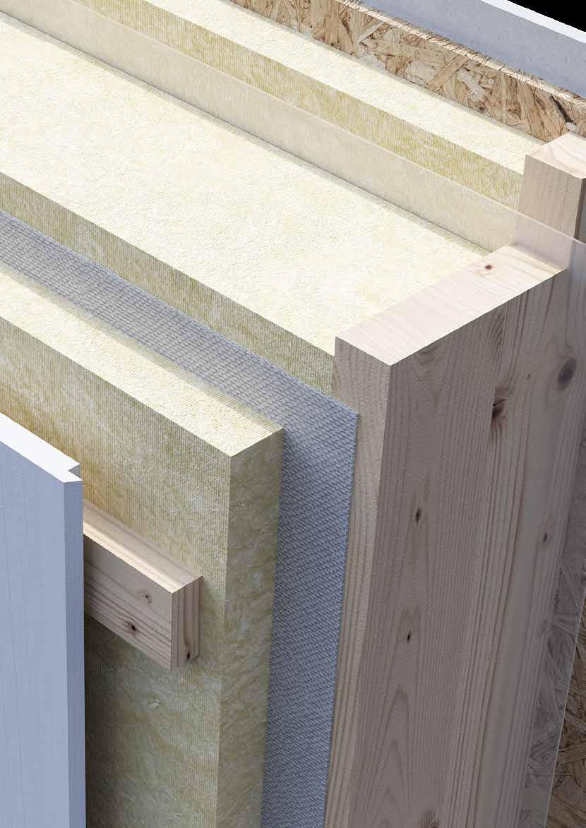• Genom att fasadskivan är ett obrutet utvändigt isoleringsskikt får du en fuktskyddad stomme och minimalt med köldbryggor.