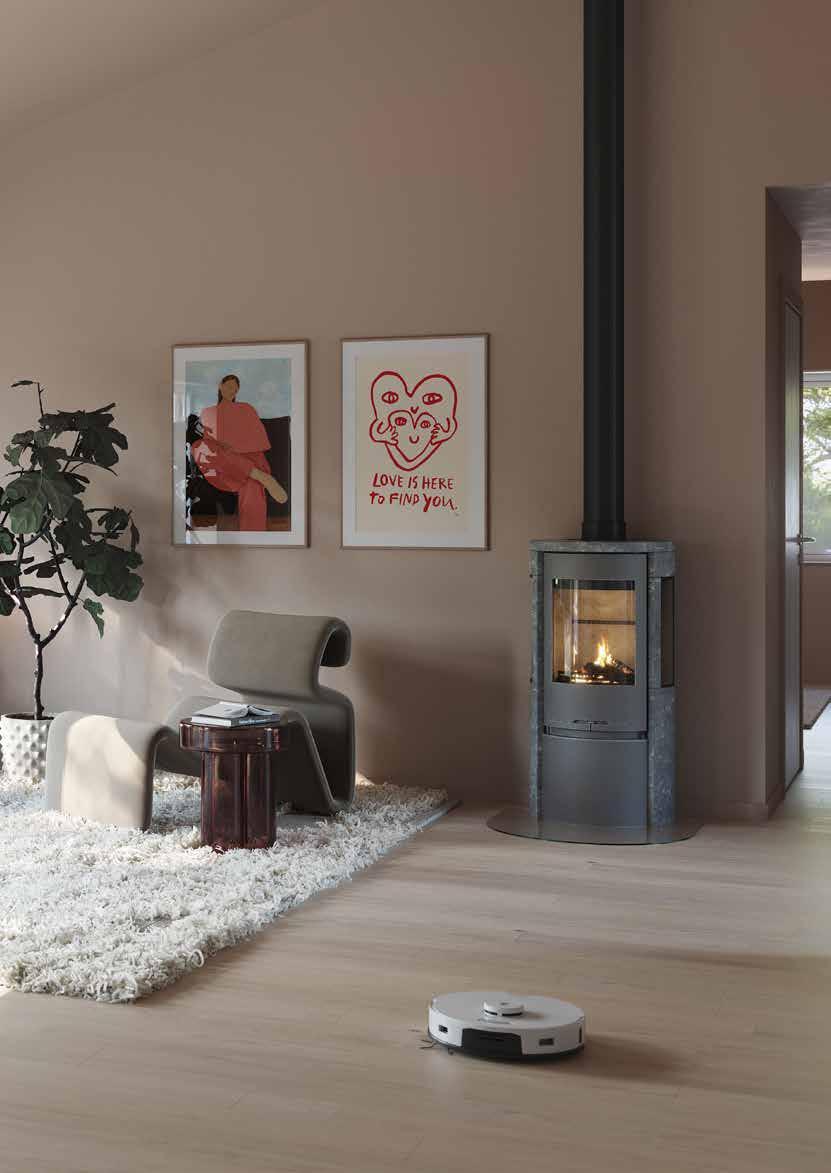 Att ha vattenburen golvvärme för uppvärmning är en investering som både är ekonomisk och energisnål. Eftersom golvvärmen täcker en stor yta, så kan rummen värmas upp med låg framledningstemperatur. Du kan alltså sänka temperaturen, uppleva en behaglig värme i rummen samtidigt som du spar energi. Det ger ett bättre inomhusklimat samt gör golvvärme optimalt tillsammans med värmepumpar. På övre plan ingår radiatorer.