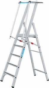 Robust och smidig hantverkarställning med enkel hantering av ställningsramen tack vare smidig enhandslåsning, ställningen låses och fälls ihop med bara ett klick. Utrustad med Ø 125 mm länkhjul med låsningsbroms, kan uppgraderas till höjdjusterbara hjul med hjälp av hjuladapter. Plattformsstorlek 1,80 x 0,60 m.