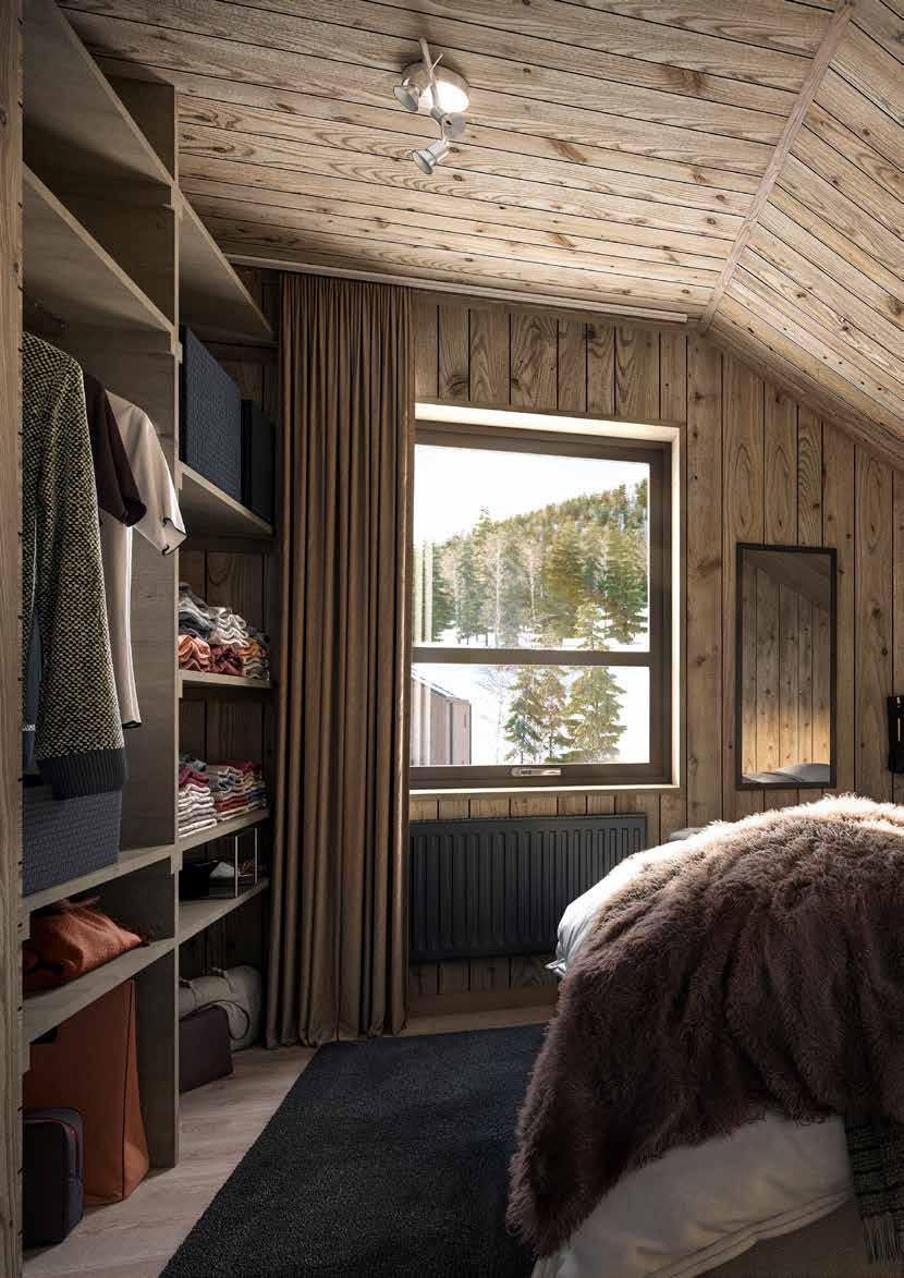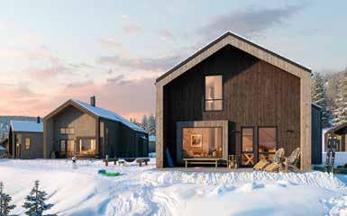 När det kommer till husens utformning har vi fokuserat på att fånga upp målgruppens olika behov. Här finns plats för tillsammanstid men också för avskildhet. Även möjligheten till att arbeta några timmar på distans vid de tänkta arbetsplatserna. Att kunna ta med sig jobbet till fjällen öppnar för spontana långhelger, där man kan växla mellan dator och skidåkning utan att kompromissa.