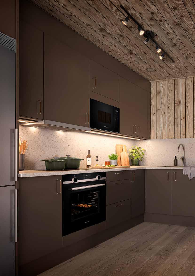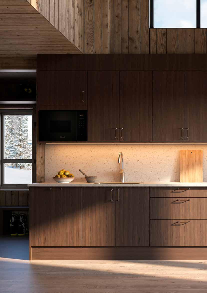 I Skogsliden har vi tagit fram fyra stilkoncept som fångar känslan av fjällen, naturen och stuglivet. Det handlar om material som tål vardagen, färger som hämtar inspiration från skogen och former som skapar lugn. Allt för att du ska kunna flytta in i en stuga där allt redan hänger ihop, från kök till trappa och garderober.