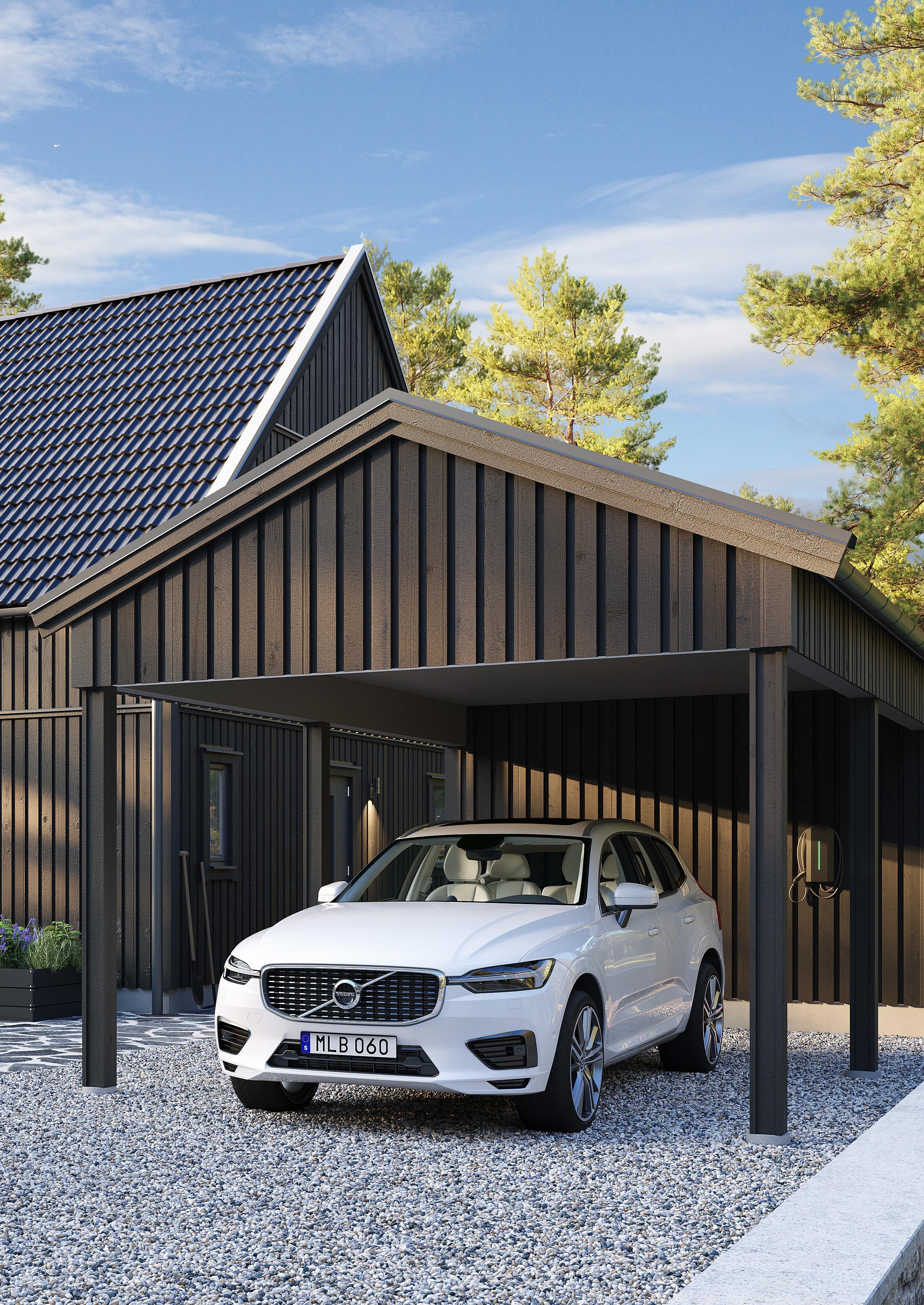 På bilden visualiseras enkelcarport CF 4-8. Bilden är en inspirationsbild.