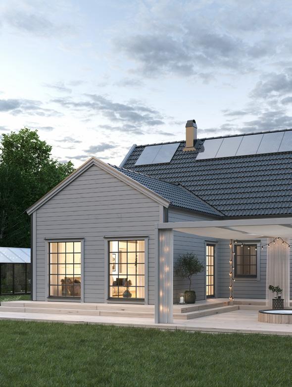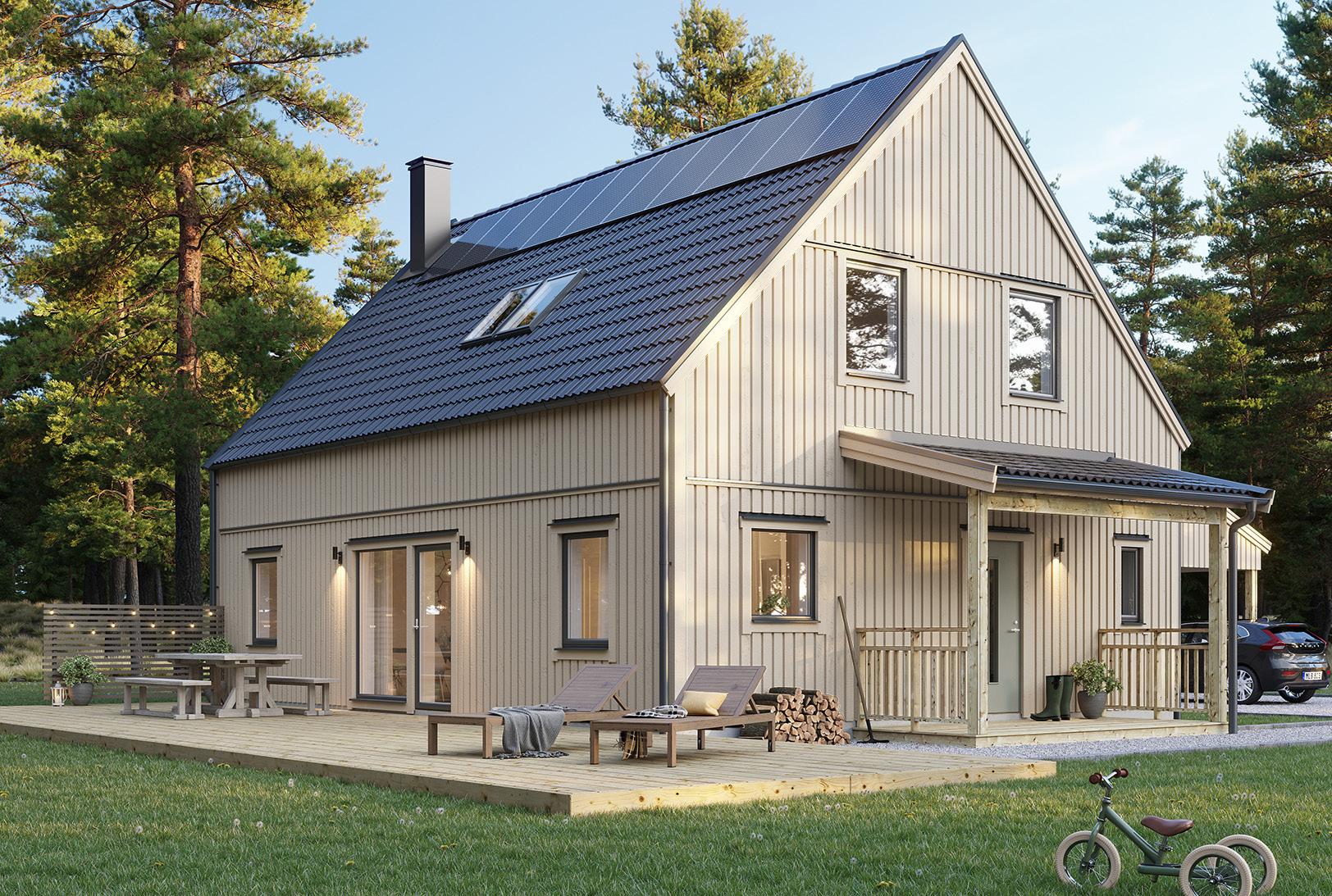 Bilden är en inspirationsbild. Solcellerna på bilden ingår inte utan är ett tillval.