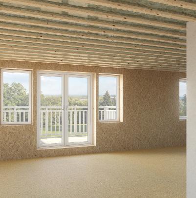 • Innersta lagret av ytterväggen är klädd med både OSB- och gipsskivor för att förenkla vid montage av t.ex. bokhyllor eller TV. Gipsskivorna monteras på plats för att underlätta slutinstallation av el.