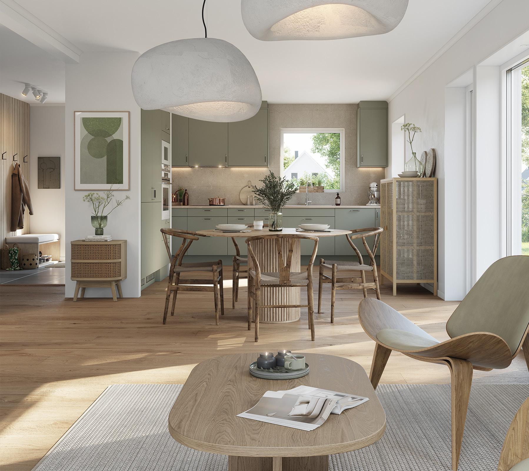 Vi bygger ditt hem i trä, en förnybar råvara som binder koldioxid i takt med att skogen växer. Alla hus vi bygger har fokus på att ha en så liten klimatpåverkan som möjligt och samtidigt vara energieffektiva. Detta innebär att du får ett hem med hög boendestandard och låg energiförbrukning.
