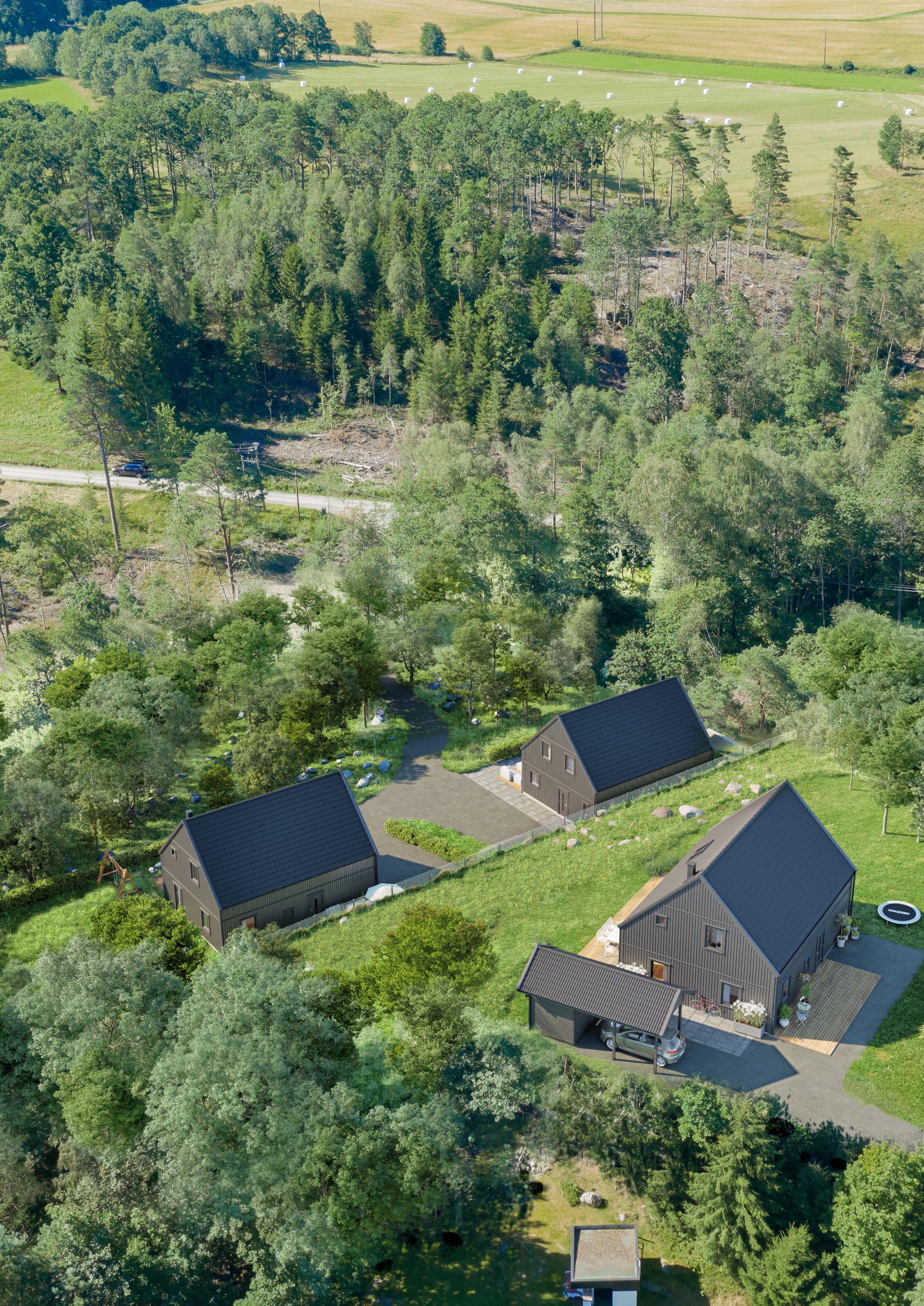 För husen i Aggetorp har du möjlighet att sätta din egen prägel och skapa en bostad som matchar din livsstil På tomterna är det Villa Talludden som är valbart. Vi har utifrån våra erfarenheter och tomtens utformning tagit fram just detta husförslag. Även möjlighet till garage eller carport finns på tomt 1. Kontakta trähussäljare Daniel för mer information om husmodellen och valbara sidobyggnader.